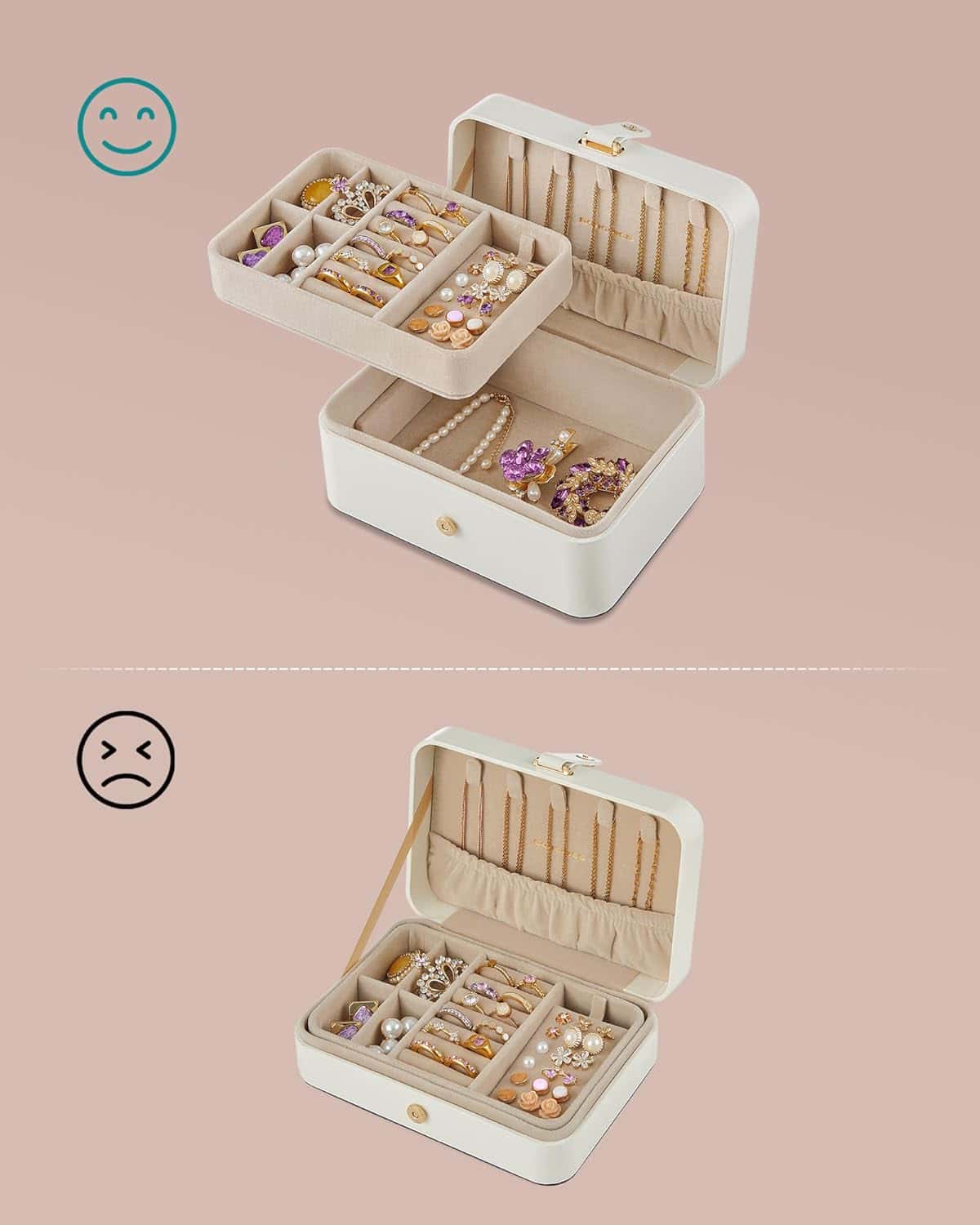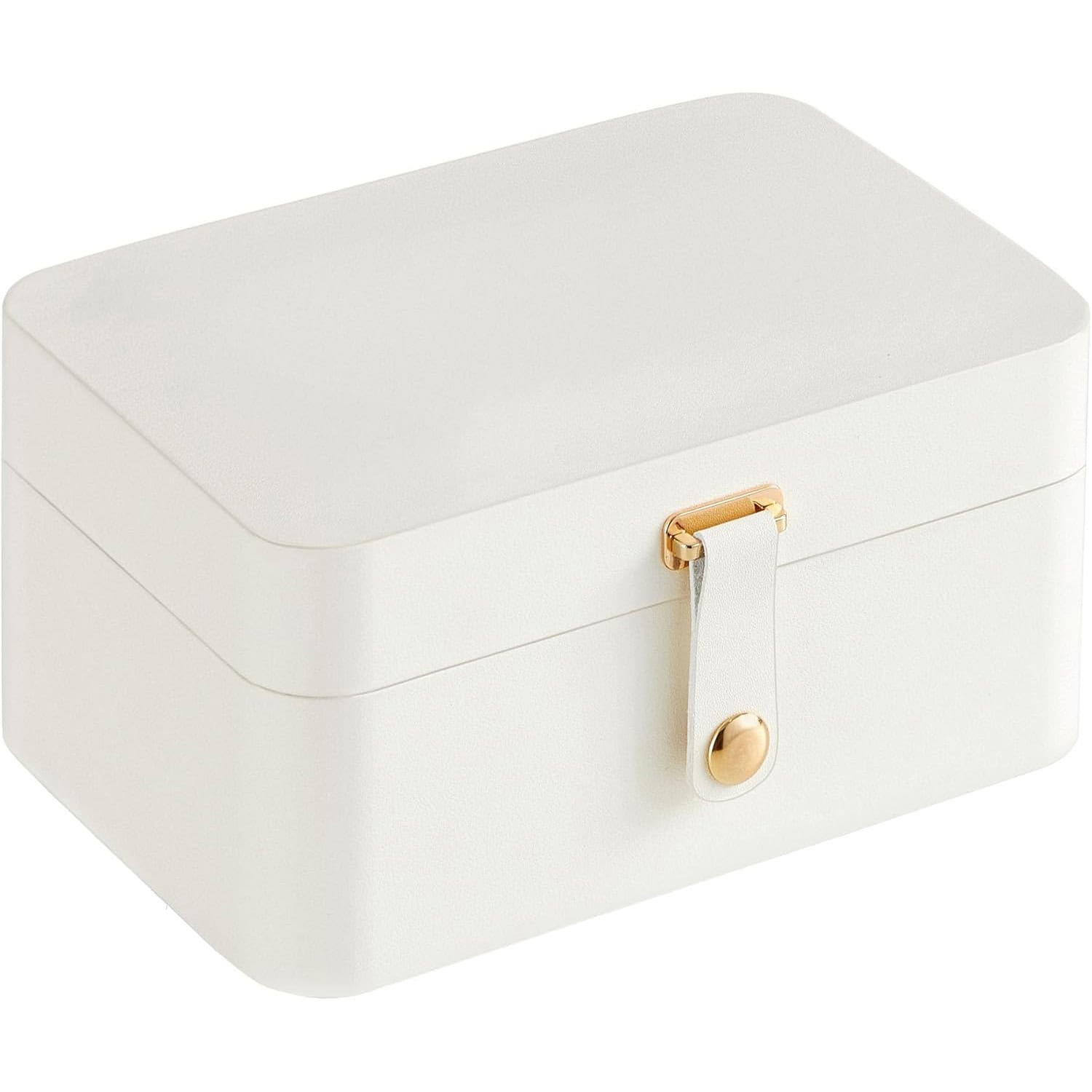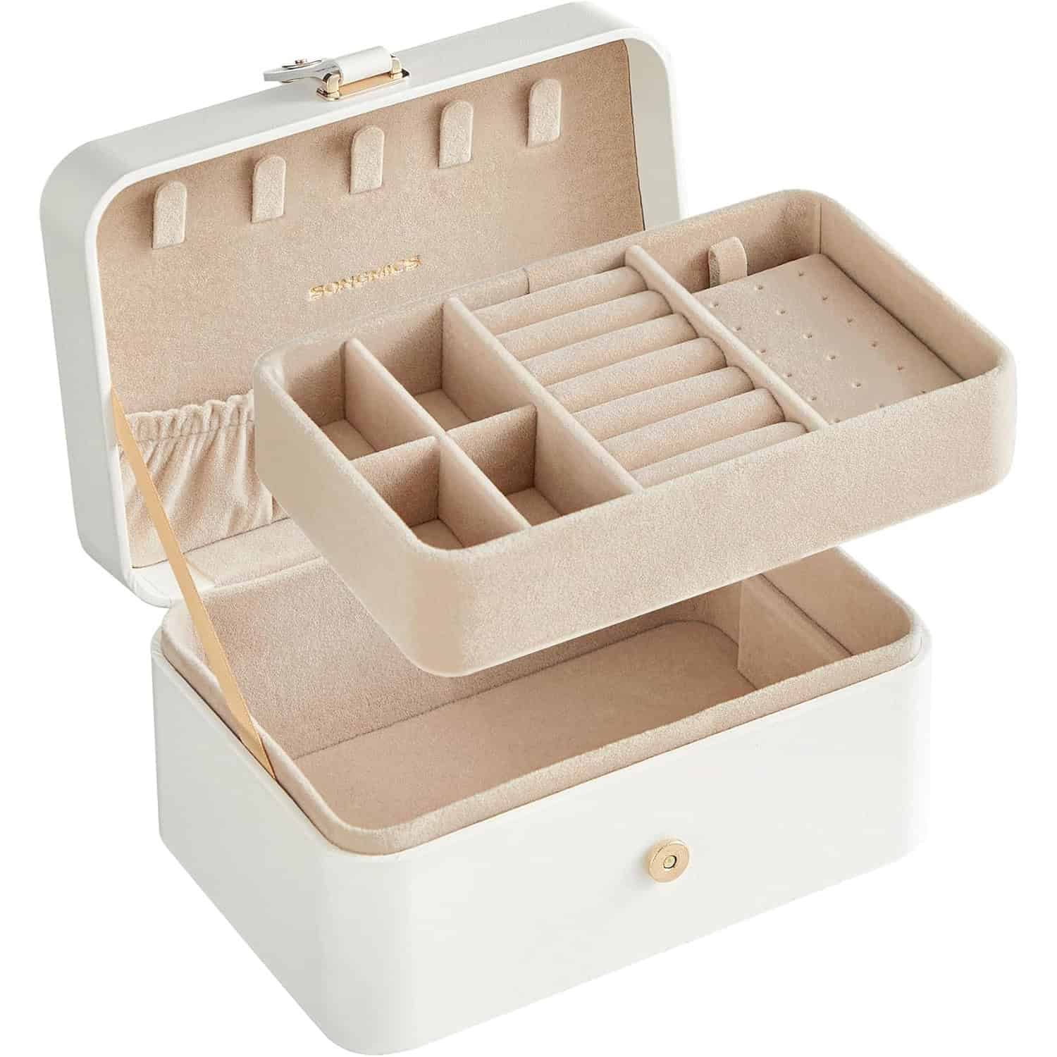 Cutie bijuterii 2 niveluri, compartimente pentru inele, cercei si coliere, 16x11x8 cm, alb Mob360
