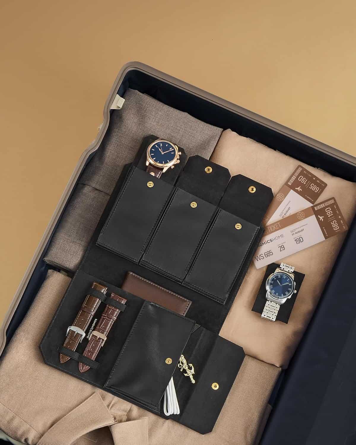 Cutie ceasuri Ronne Collection pentru 3 ceasuri, piele PU, cu compartiment secret, 22x15x5 cm, negru Mob360