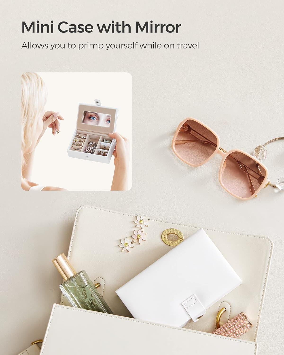 Mini husa de calatorie separata: Acest organizator de bijuterii vine cu o mini cutie de bijuterii de calatorie, care este perfecta pentru a aduce cateva piese in calatorie.