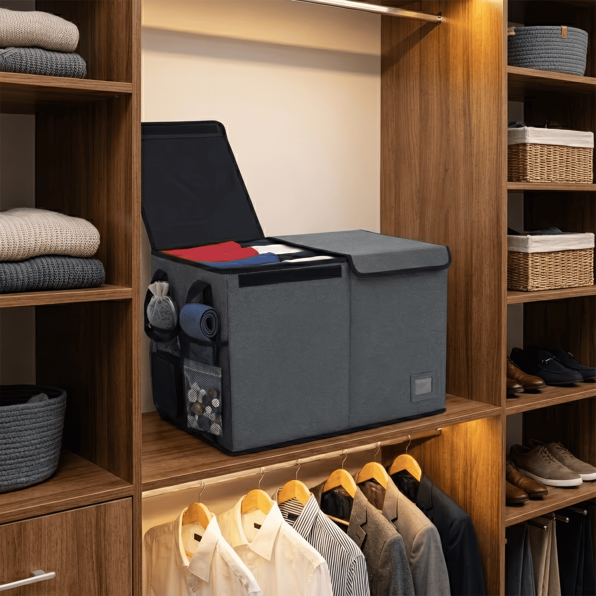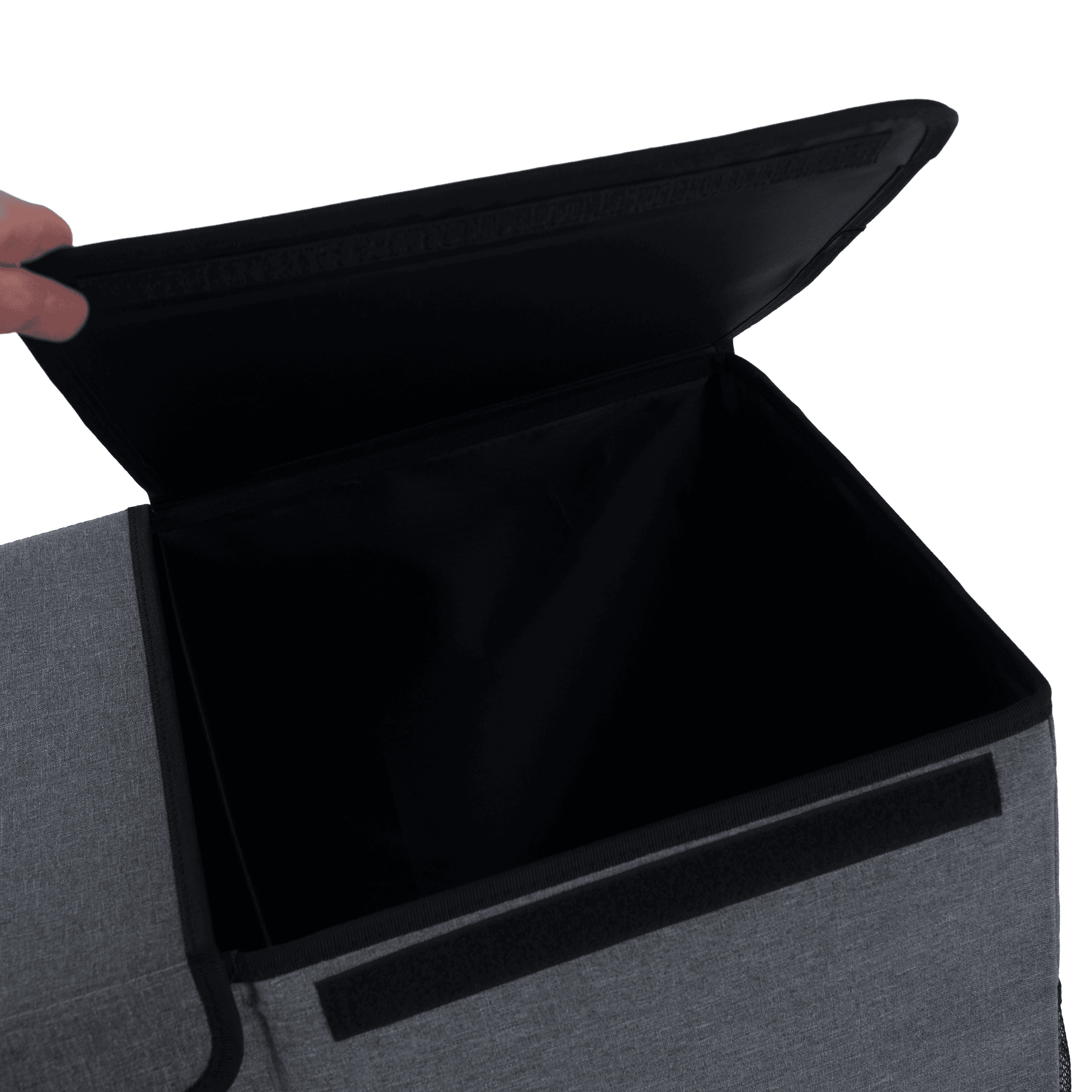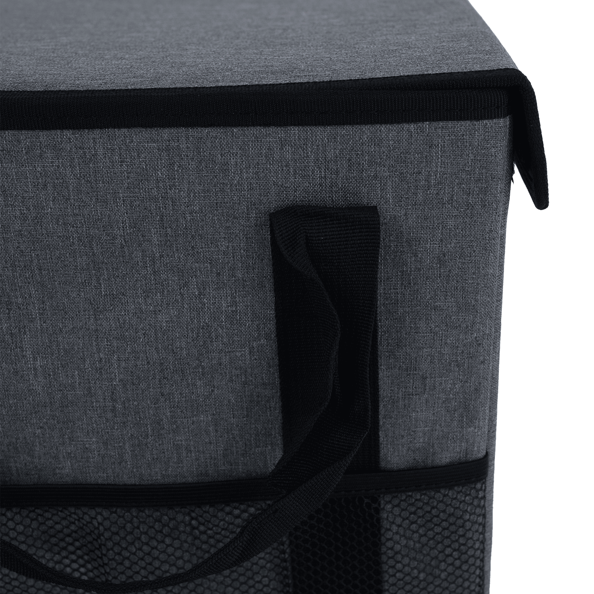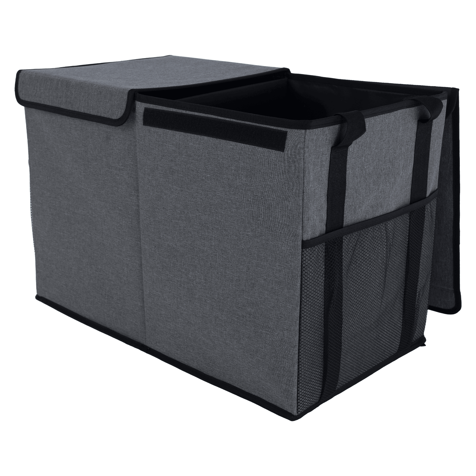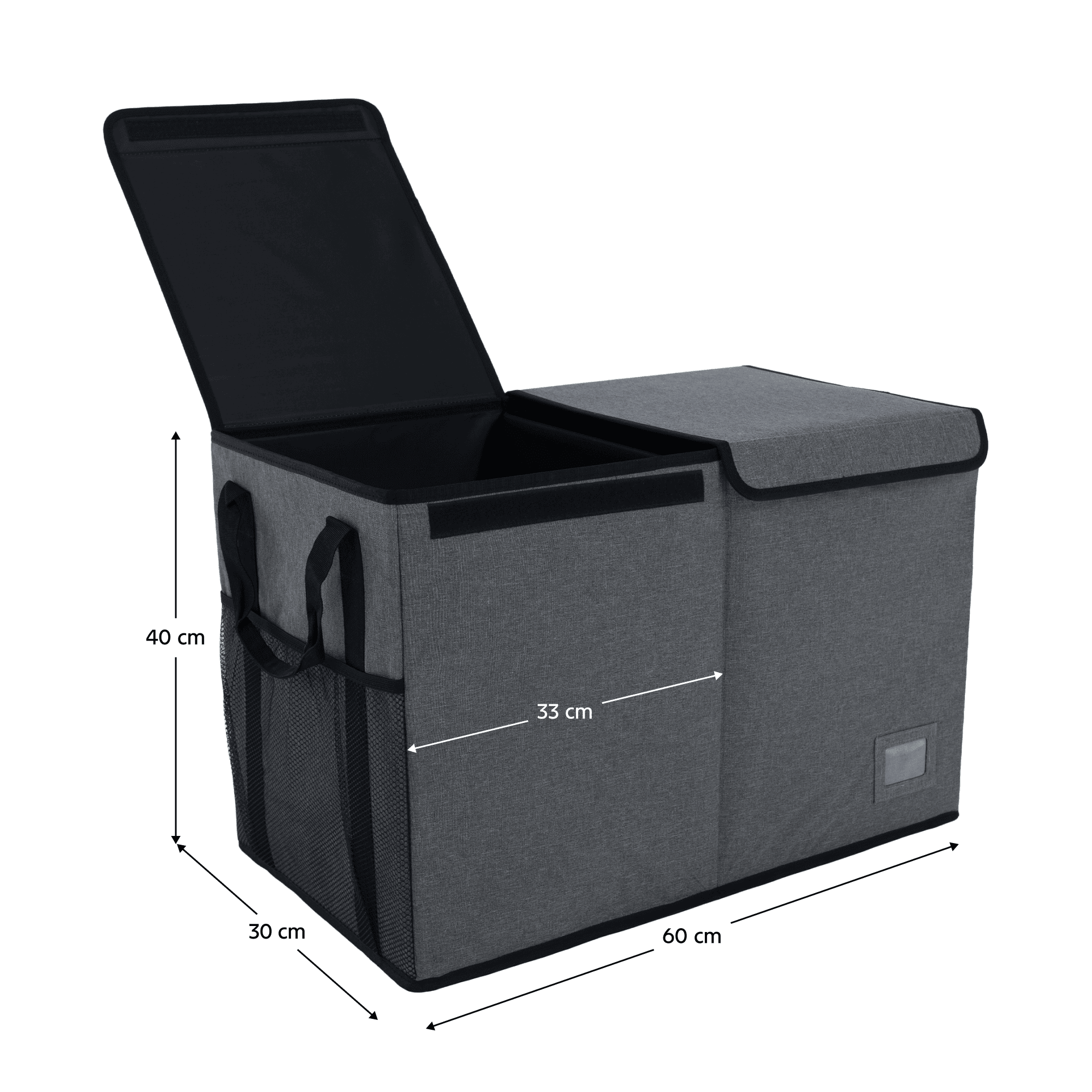 Material: ţesătură Culoare: gri/negru Dimensiuni (lxAxh): 60x33x40 cm Utilizare versatilă Portabil Cu mânere Pliabil Uşor de depozitat Economie de spaţiu Buzunare din plasă pe laturi Închidere cu velcro Menţine ordinea Ajută la organizare Practic Nu spălaţi, Nu înălbiţi, Nu călcaţi, Nu curăţaţi chimic şi Nu uscaţi în uscător