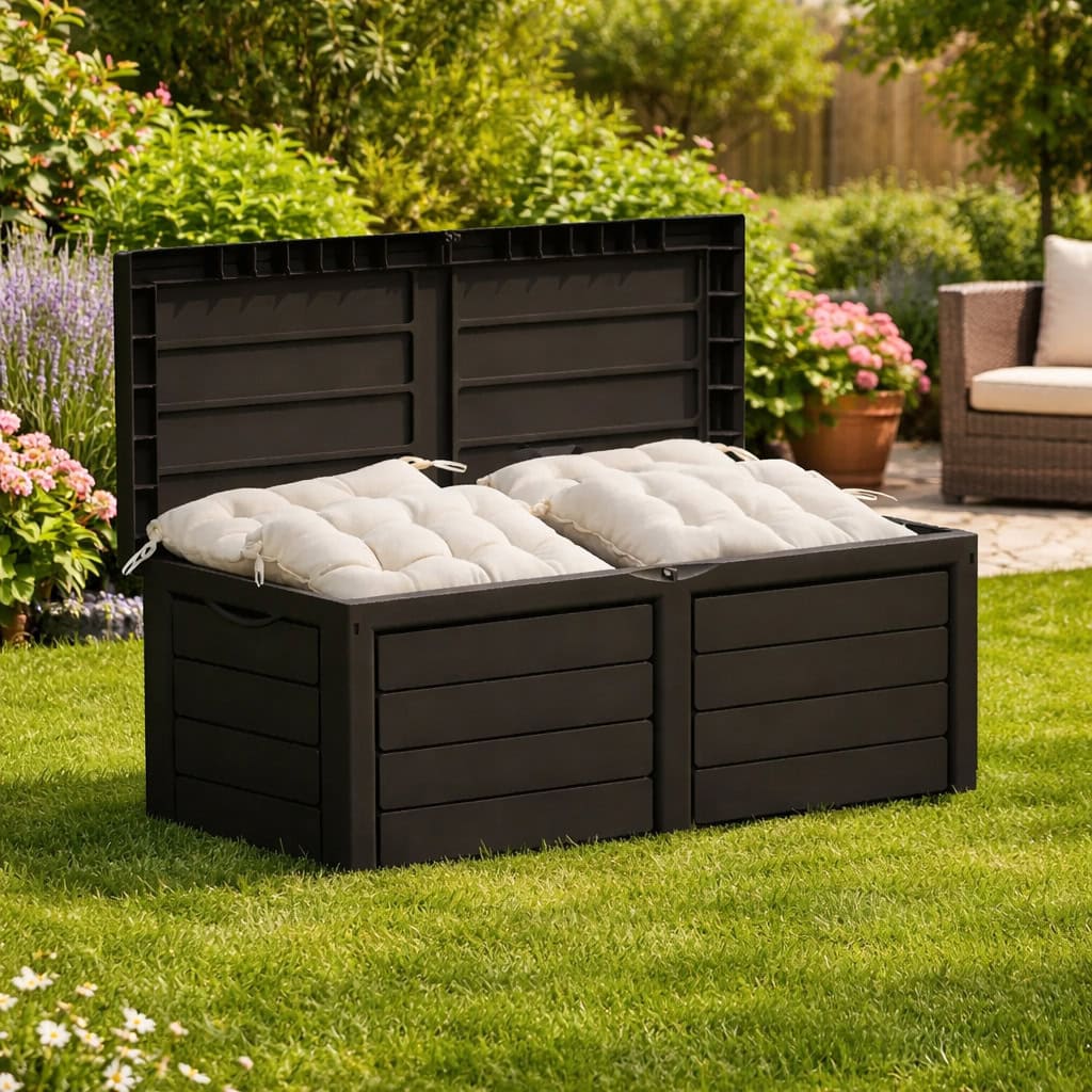 Cutie depozitare gradina 320 l, pentru perne si accesorii, 119x52x53 cm, negru Mob360