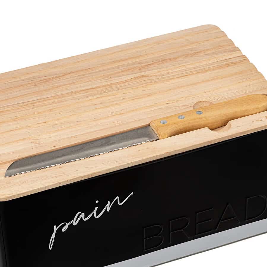 Cutie paine 5Five Color Edition cu capac din lemn, include cutit, 33x21x15 cm, negru Mob360 – produs disponibil în magazinul Mob360.