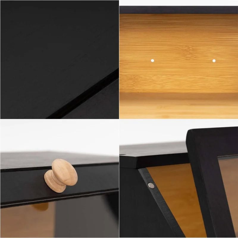 Cutie pentru paine cu 2 niveluri din bambus, cu ferestre transparente si inchidere magnetica, 39x25x32 cm, negru Mob360