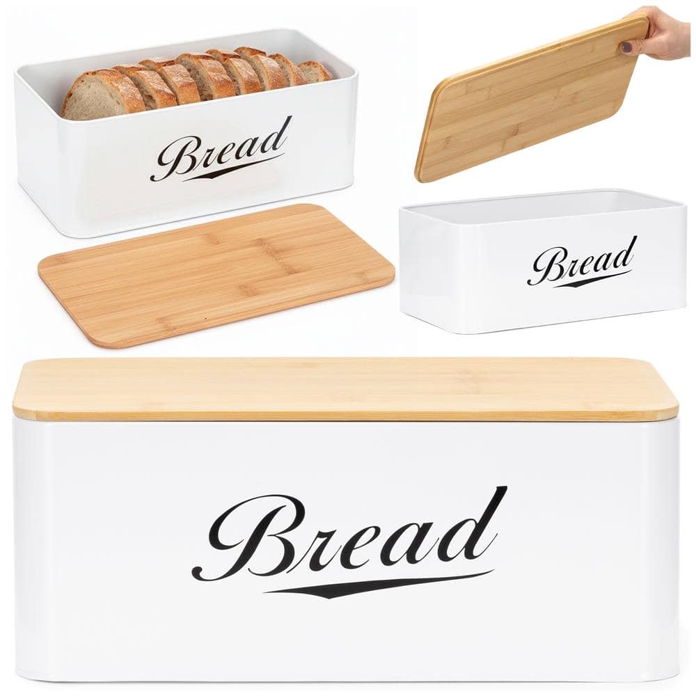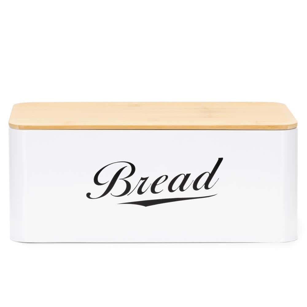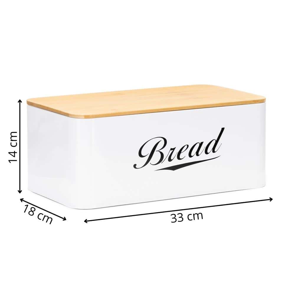 Cutie pentru paine din metal cu capac din bambus, finisaj lucios, 33x18x14 cm, alb Mob360