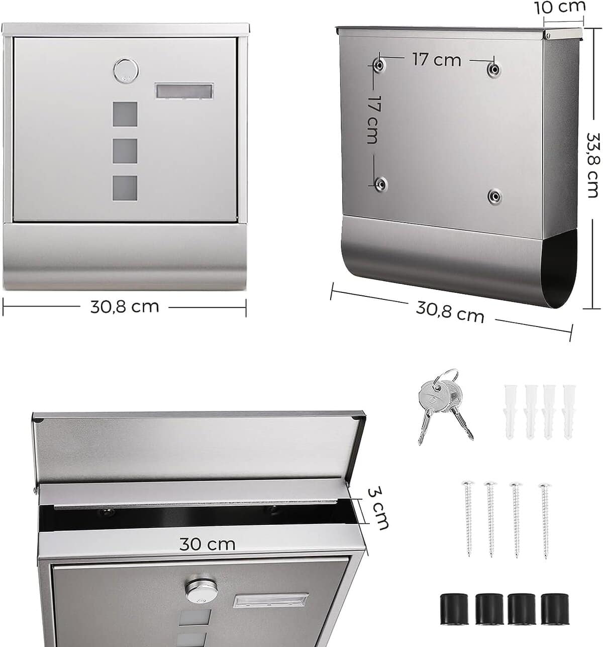 Cutie postala de exterior, pentru gard sau perete, din otel, 31x10x33cm, argintiu Mob360