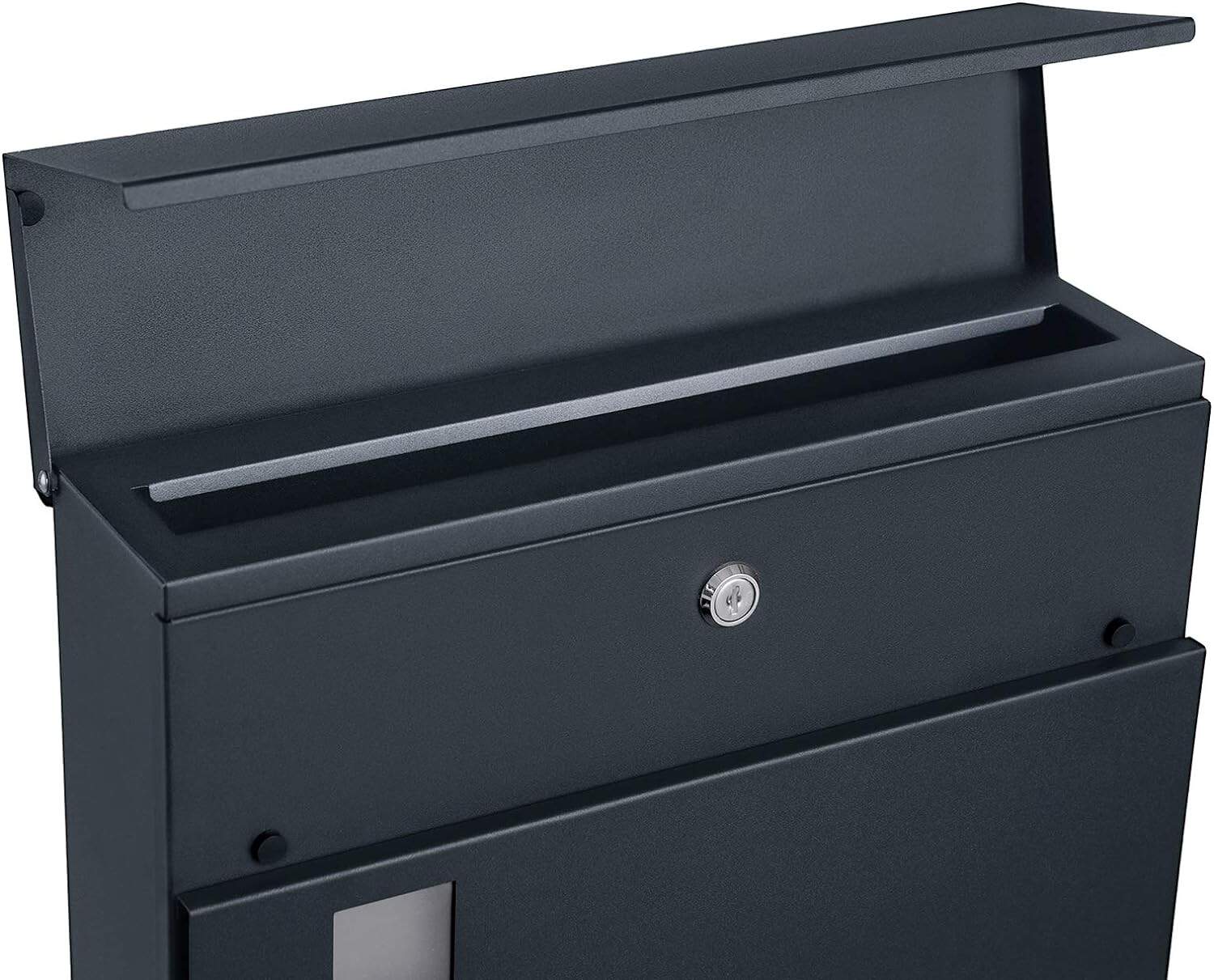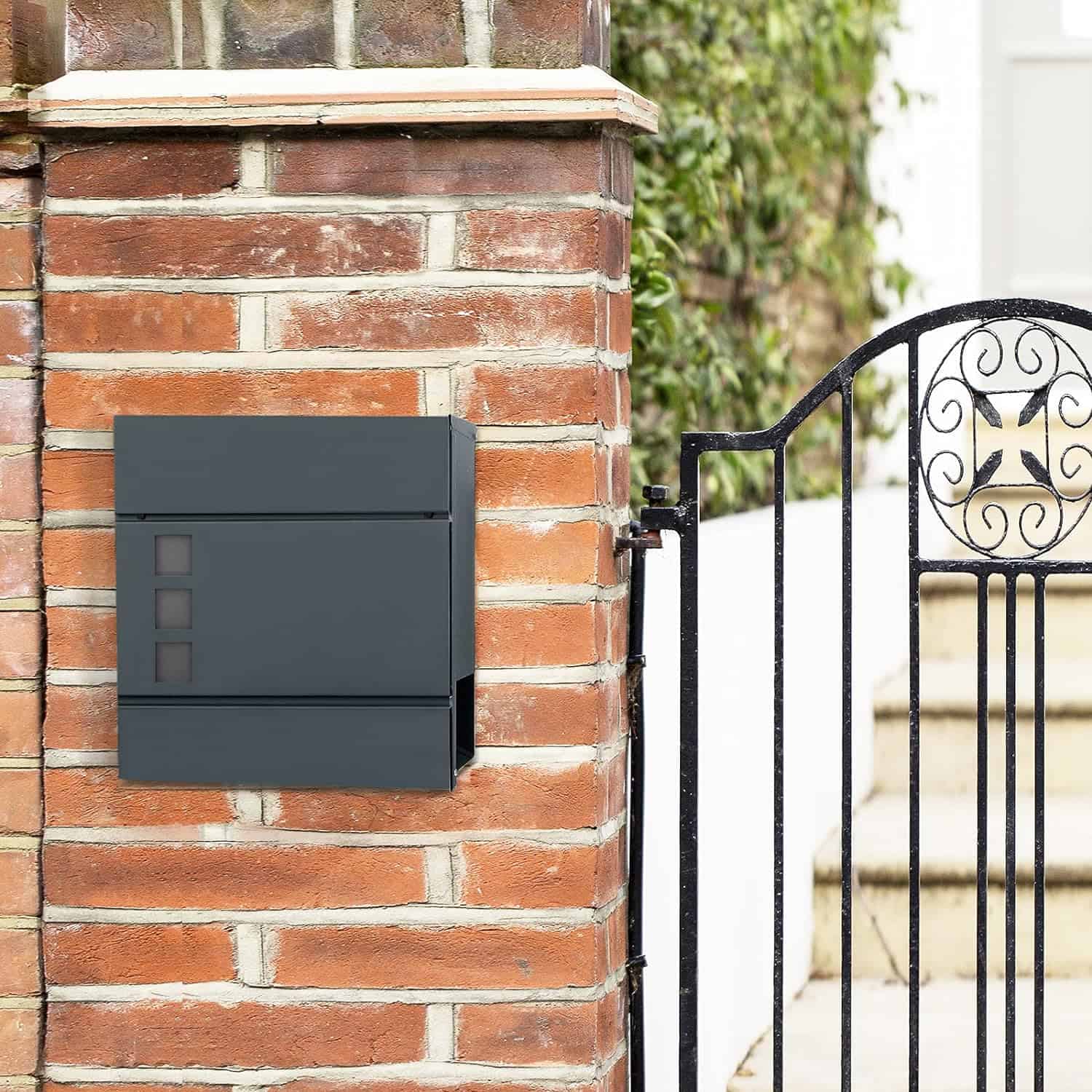 Specificatii: Culoare: Gri antracit Material: Otel zincat Dimensiunea produsului: 37 x 10,5 x 37 cm (L x l x i) Greutatea produsului: 3,4 kg Despre acest articol Intr-o culoare neagra clasica, cu linii curate, aceasta cutie postala va arata minunat in casa dvs.Odata ce miezul unei incuietori se uda din cauza ploii, tinde sa rugineasca. De aceea, incuietoarea acestei cutii postale este protejata de un capac cu clapeta din otel pentru a o feri de umiditateAceasta cutie postala durabila, din otel zincat acoperit cu pulbere, este rezistenta la apa si rugina. In plus, are un suport pentru ziare pentru a gazdui cataloage, reviste si tot ceea ce va place sa primiti prin posta.Aceasta cutie postala este livrata cu toate suruburile de expansiune si pene de cauciuc necesare. Este usor de instalat cu ajutorul unui burghiu langa poarta sau usa de la intrare.Ce primesti: O cutie postala solida, cu capac rabatabil, incuietoare, ferestre de vizualizare, 2 chei si toate accesoriile de montare necesare.
