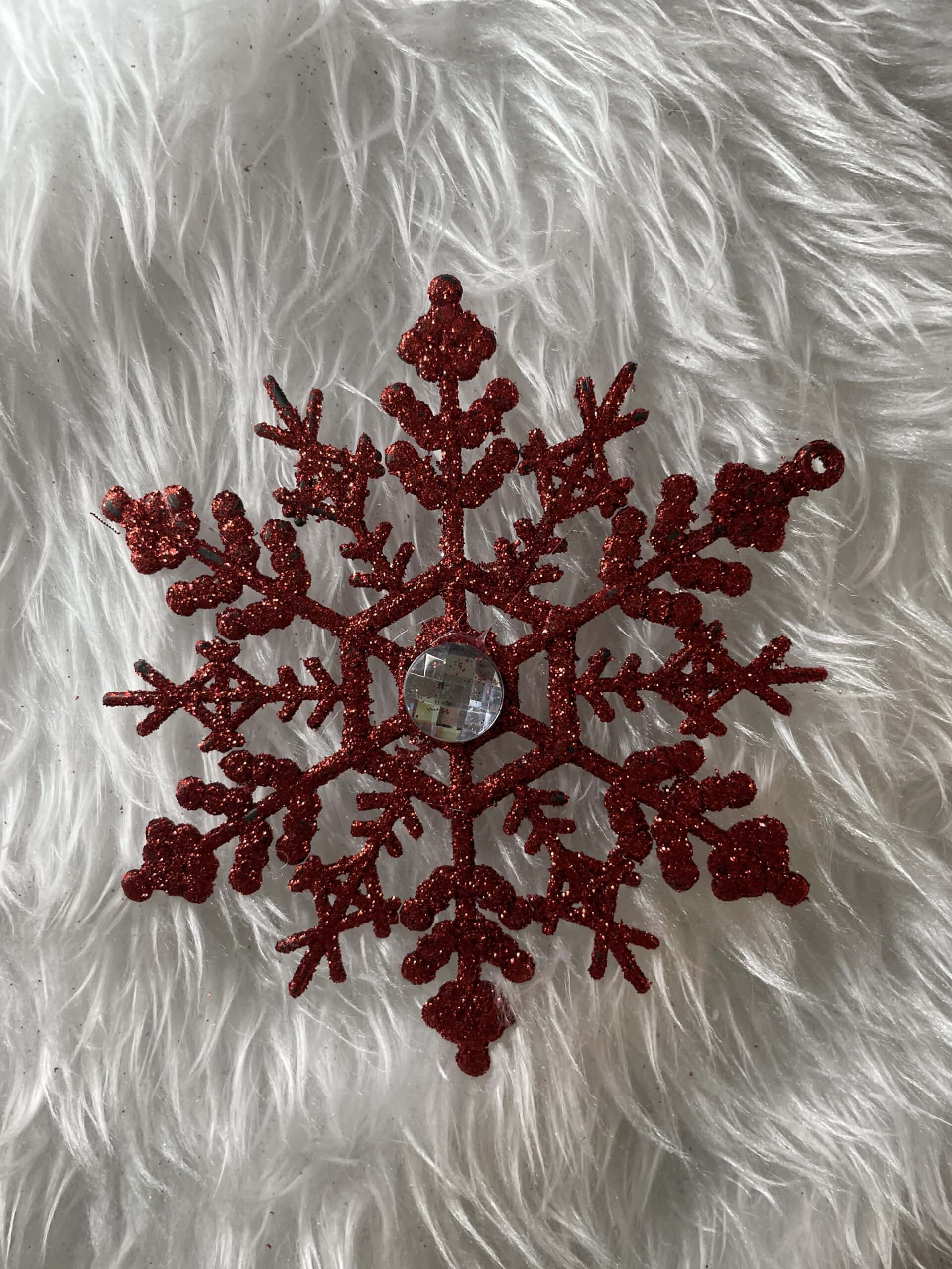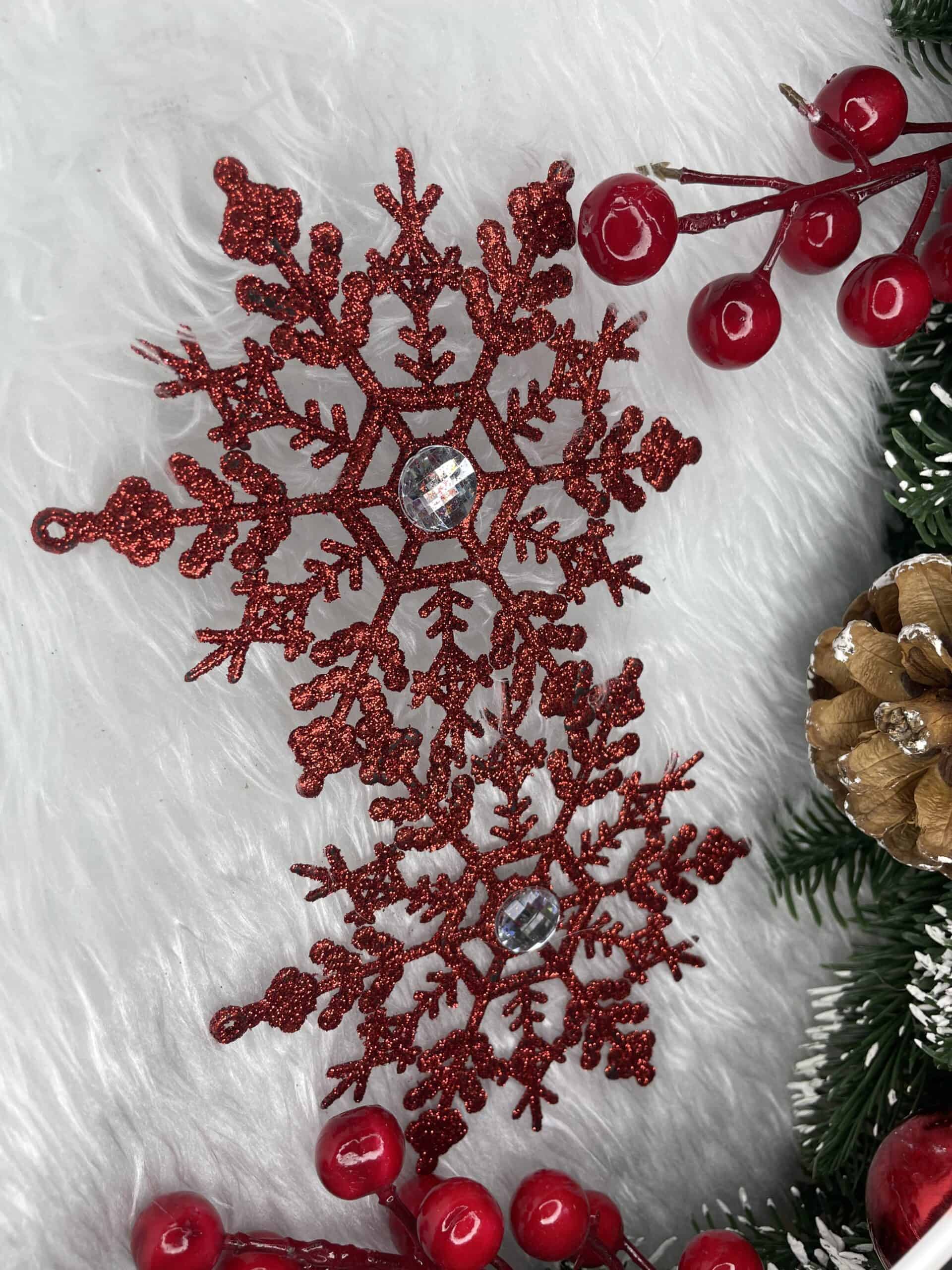 Inaltime: 12 cm Latime: 10 cm Culoare: rosu Decoratiuni: cristal transparent, sclipici Numar de bucati per pachet: 2 Material: plastic Craciunul, ca si intreaga perioada de iarna, este o perioada magica, plina de caldura si de o atmosfera unica, creata datorita unui spectacol de decoratiuni fabuloase si constelatii luminoase incantatoare. Pandantivele frumoase in forma de fulgi de zapada va vor decora frumos bradul de Craciun. Setul este format din 2 fulgi de zapada cu decupaje frumoase. Pandantivele sunt insotite de o sfoara pentru a le agata pe crengile bradului de Craciun. Realizat cu grija – cu atentie la cel mai mic detaliu Vine cu o sfoara decorativa – nu trebuie sa va faceti griji cu privire la problemele de agatat Indestructibil – sigur pentru casele cu copii si animale de companie Finisaj cu sclipici – un aspect unic Copiii care adora sa impodobeasca bradul, precum si o pisica care vaneaza cu insistenta un brad de Craciun, se vor putea bucura de aceasta perioada speciala fara teama de a se rani. Vei ramane calm chiar daca unul dintre pandantivele noastre iti cade din maini.
