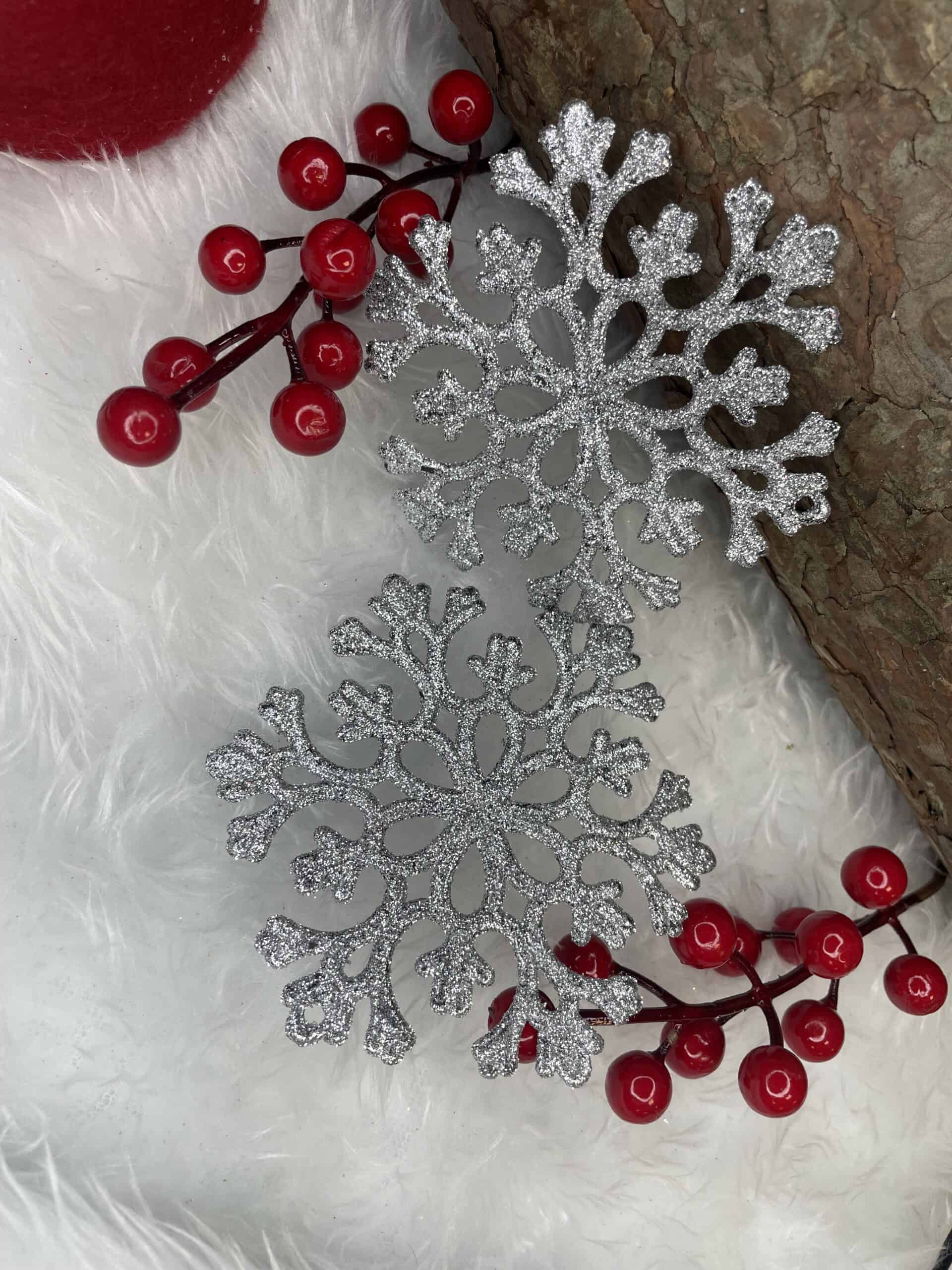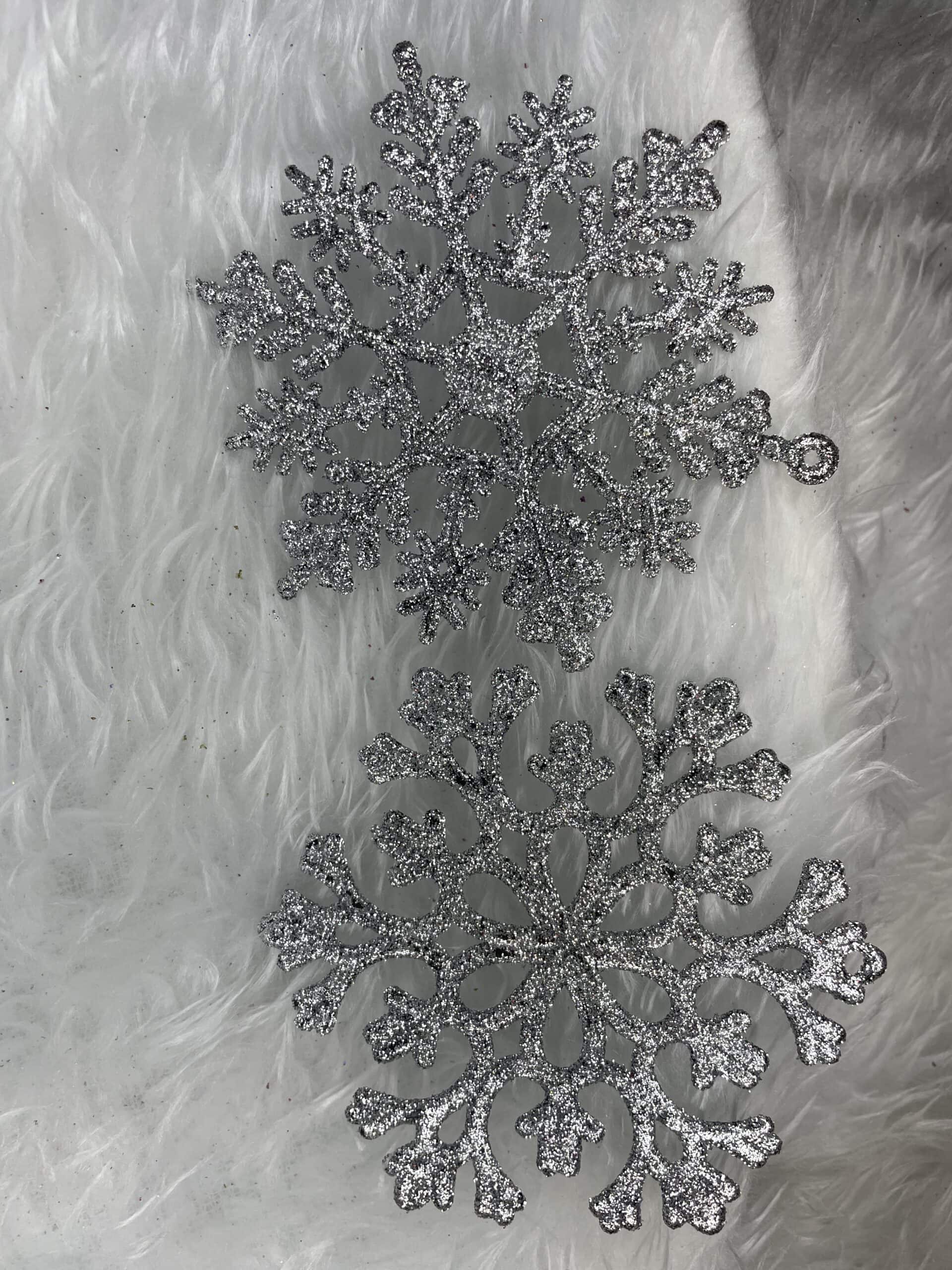 Material: PP Diametru: 10 cm Numar pe pachet: 12 bucati Numar de modele: 2 Finisaj: sclipici Culoare: argintiu Craciunul, ca si intreaga perioada de iarna, este o perioada magica, plina de caldura si de o atmosfera unica, creata datorita unui spectacol de decoratiuni fabuloase si constelatii luminoase incantatoare. Pandantivele frumoase in forma de fulgi de zapada va vor decora frumos bradul de Craciun. Setul este format din 12 fulgi de zapada cu decupaje frumoase. Pandantivele sunt insotite de o sfoara pentru a le agata pe crengile bradului de Craciun. Realizat cu grija – cu atentie la cel mai mic detaliu Vine cu o sfoara decorativa – nu trebuie sa va faceti griji cu privire la problemele de agatat Indestructibil – sigur pentru casele cu copii si animale de companie Finisaj cu sclipici – un aspect unic Copiii care adora sa impodobeasca bradul, precum si o pisica care vaneaza cu insistenta un brad de Craciun, se vor putea bucura de aceasta perioada speciala fara teama de a se rani. Vei ramane calm chiar daca unul dintre pandantivele noastre iti cade din maini.