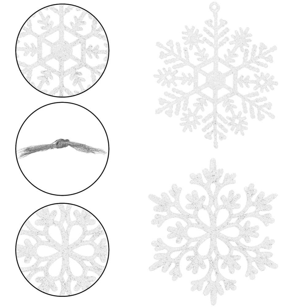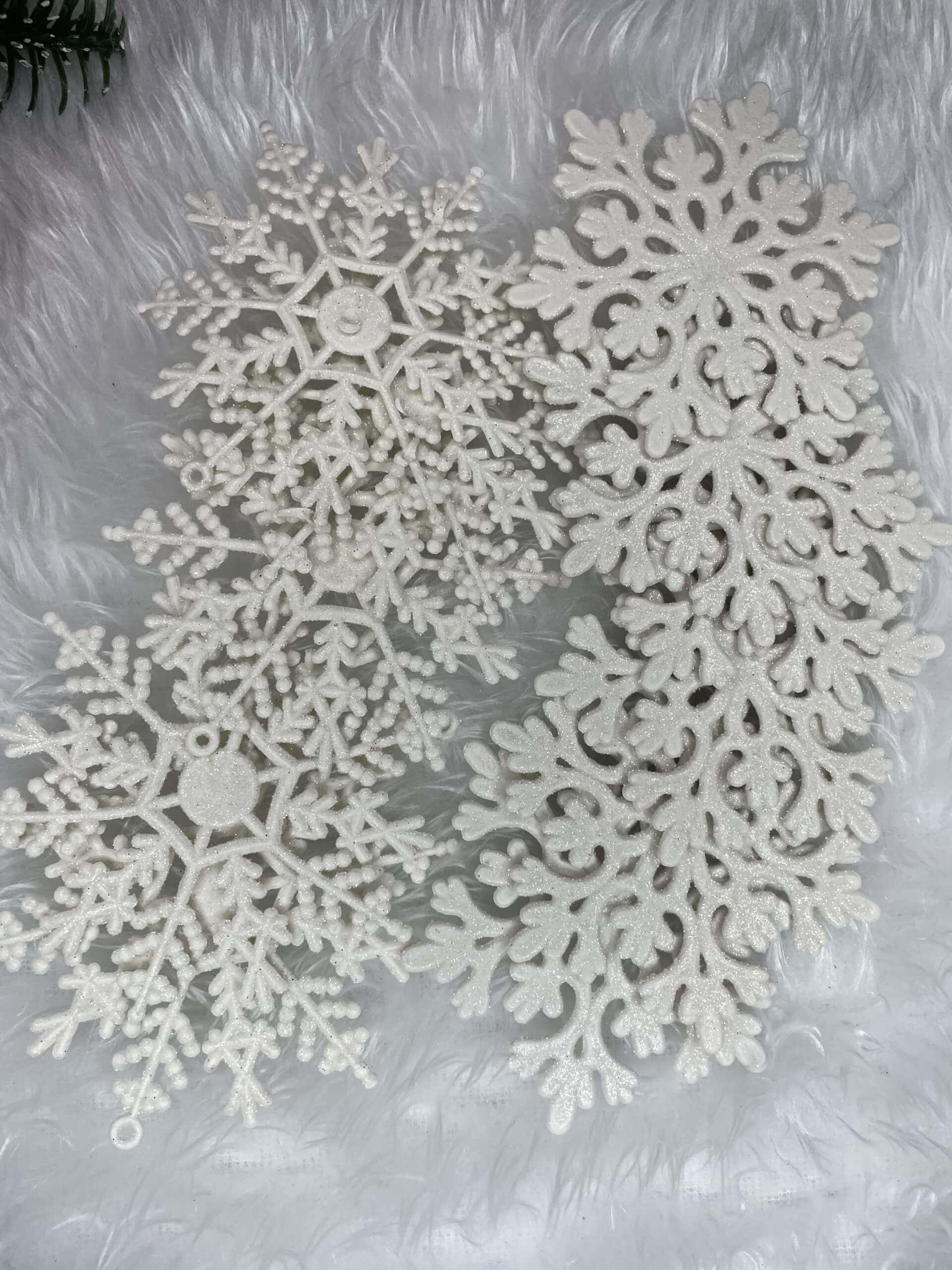 Material: PP Diametru: 9, 10 cm Cantitate in pachet: 12 bucati Numar de modele: 2 Finisaj: sclipici Culoare alba In plus: sfori pentru agatat Craciunul, ca si intreaga perioada de iarna, este o perioada magica, plina de caldura si de o atmosfera unica, creata datorita unui spectacol de decoratiuni fabuloase si constelatii luminoase incantatoare. Pandantivele frumoase in forma de fulgi de zapada va vor decora frumos bradul de Craciun. Setul este format din 12 fulgi de zapada cu decupaje frumoase. Pandantivele sunt insotite de o sfoara pentru a le agata pe crengile bradului de Craciun. Realizat cu grija – cu atentie la cel mai mic detaliu Vine cu o sfoara decorativa – nu trebuie sa va faceti griji cu privire la problemele de agatat Indestructibil – sigur pentru casele cu copii si animale de companie Copiii carora le place sa impodobeasca bradul, precum si o pisica care vaneaza cu insistenta un brad de Craciun, se vor putea bucura de aceasta perioada speciala fara teama de a se rani. Vei ramane calm chiar daca unul dintre pandantivele noastre iti cade din maini.