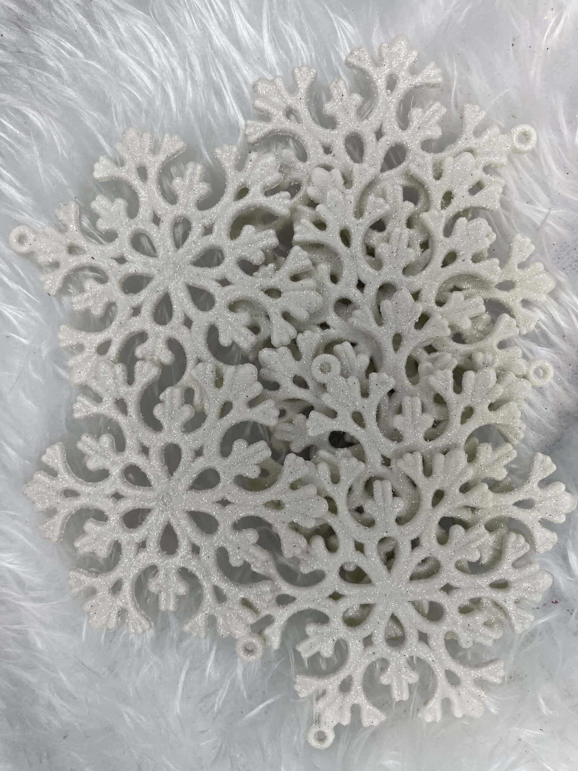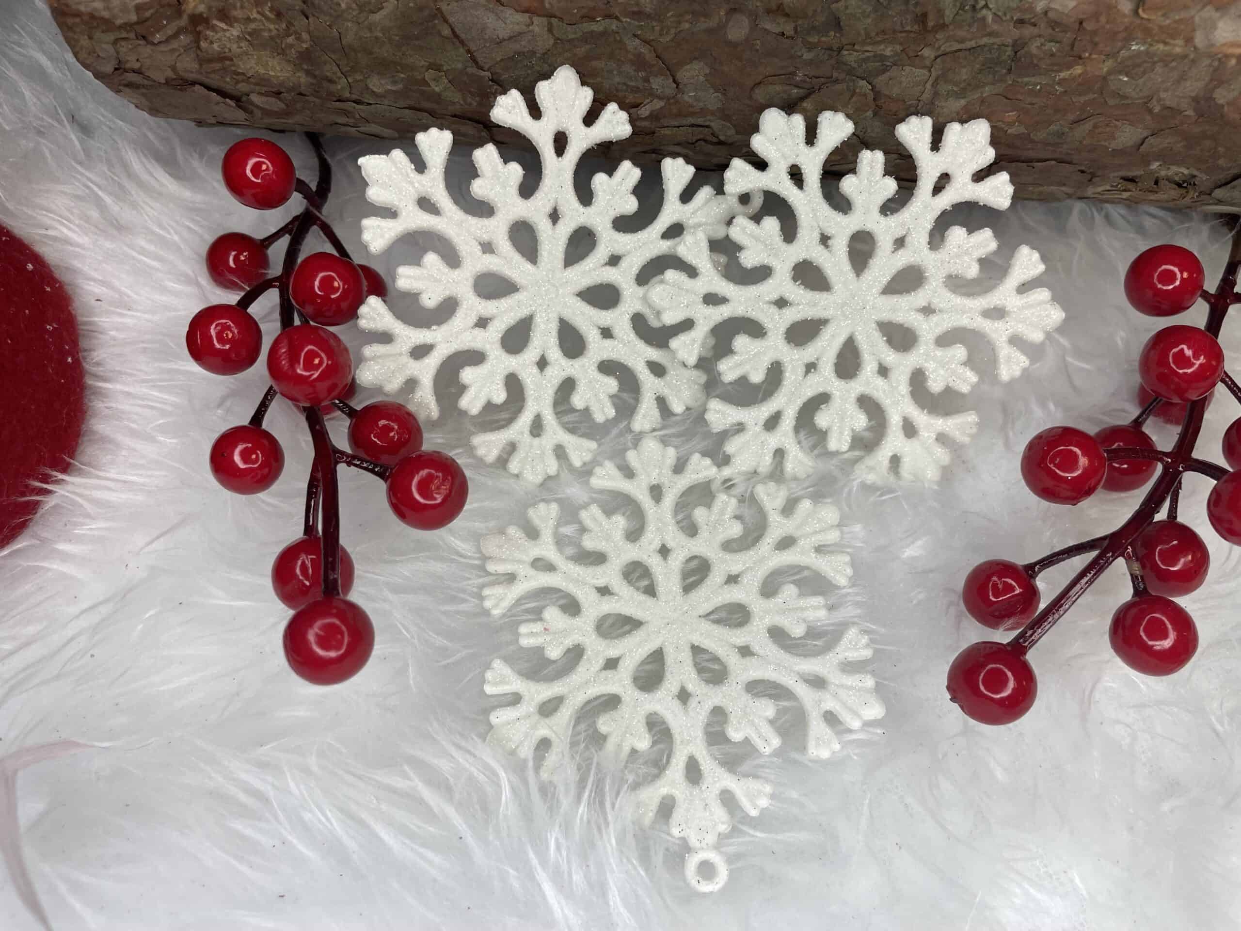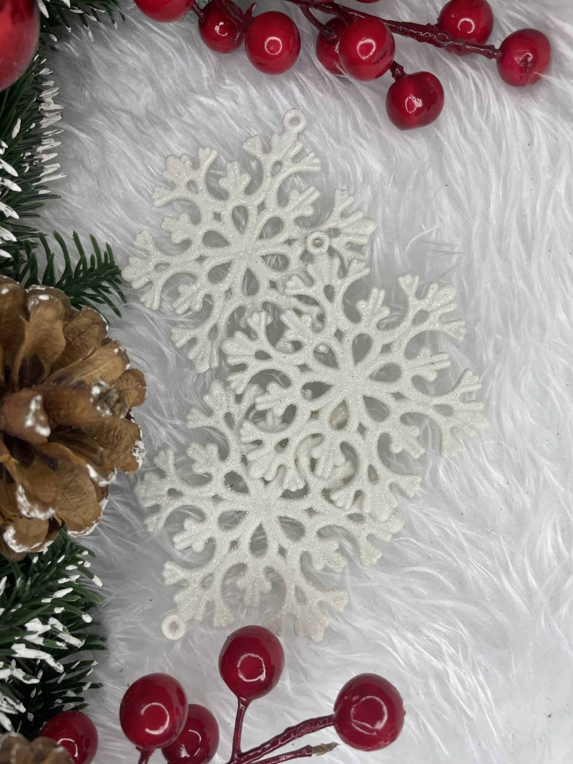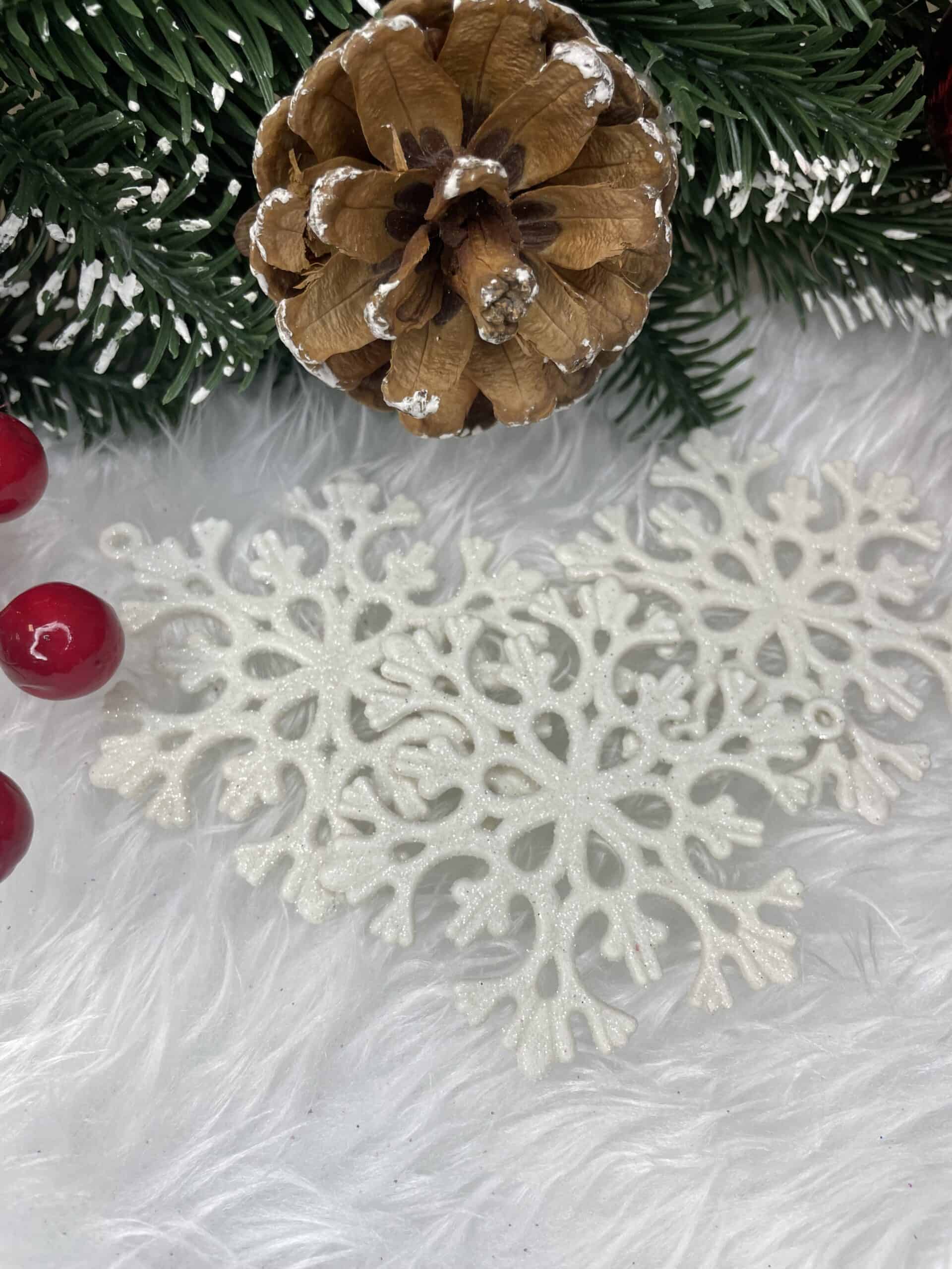 Dimensiune: 8 cm Culoare: alb Tipul de decor: sclipici Numar de bucati per pachet:8 Material: plastic Puncte forte: decor frumos cu sclipici Craciunul, ca si intreaga perioada de iarna, este o perioada magica, plina de caldura si de o atmosfera unica, creata datorita unui spectacol de decoratiuni fabuloase si constelatii luminoase incantatoare. Pandantivele frumoase in forma de fulgi de zapada va vor decora frumos bradul de Craciun. Setul este format din 8 fulgi de zapada cu decupaje frumoase. Realizat cu grija – cu atentie la cel mai mic detaliu Indestructibil – sigur pentru casele cu copii si animale de companie Finisaj cu sclipici – un aspect unic Copiii care adora sa impodobeasca bradul, precum si o pisica care vaneaza cu insistenta un brad de Craciun, se vor putea bucura de aceasta perioada speciala fara teama de a se rani. Vei ramane calm chiar daca unul dintre pandantivele noastre iti cade din maini.