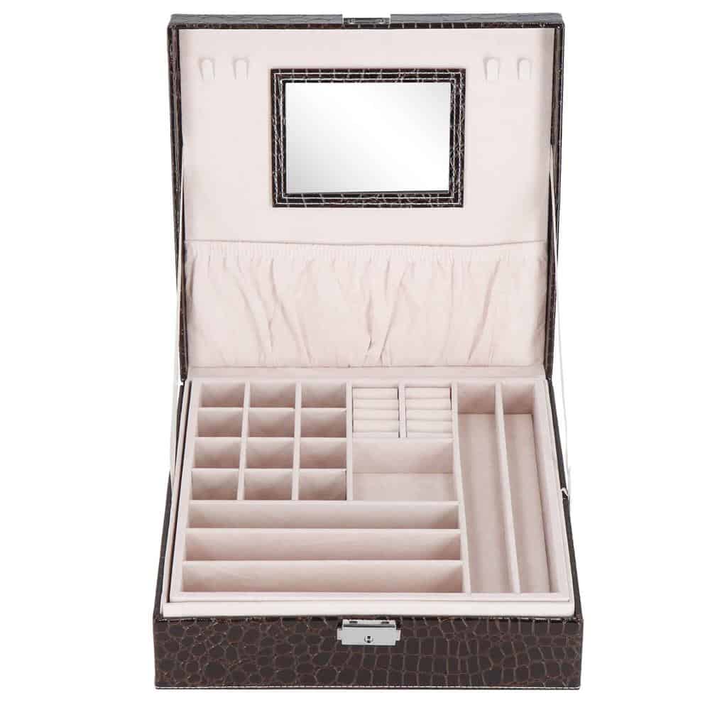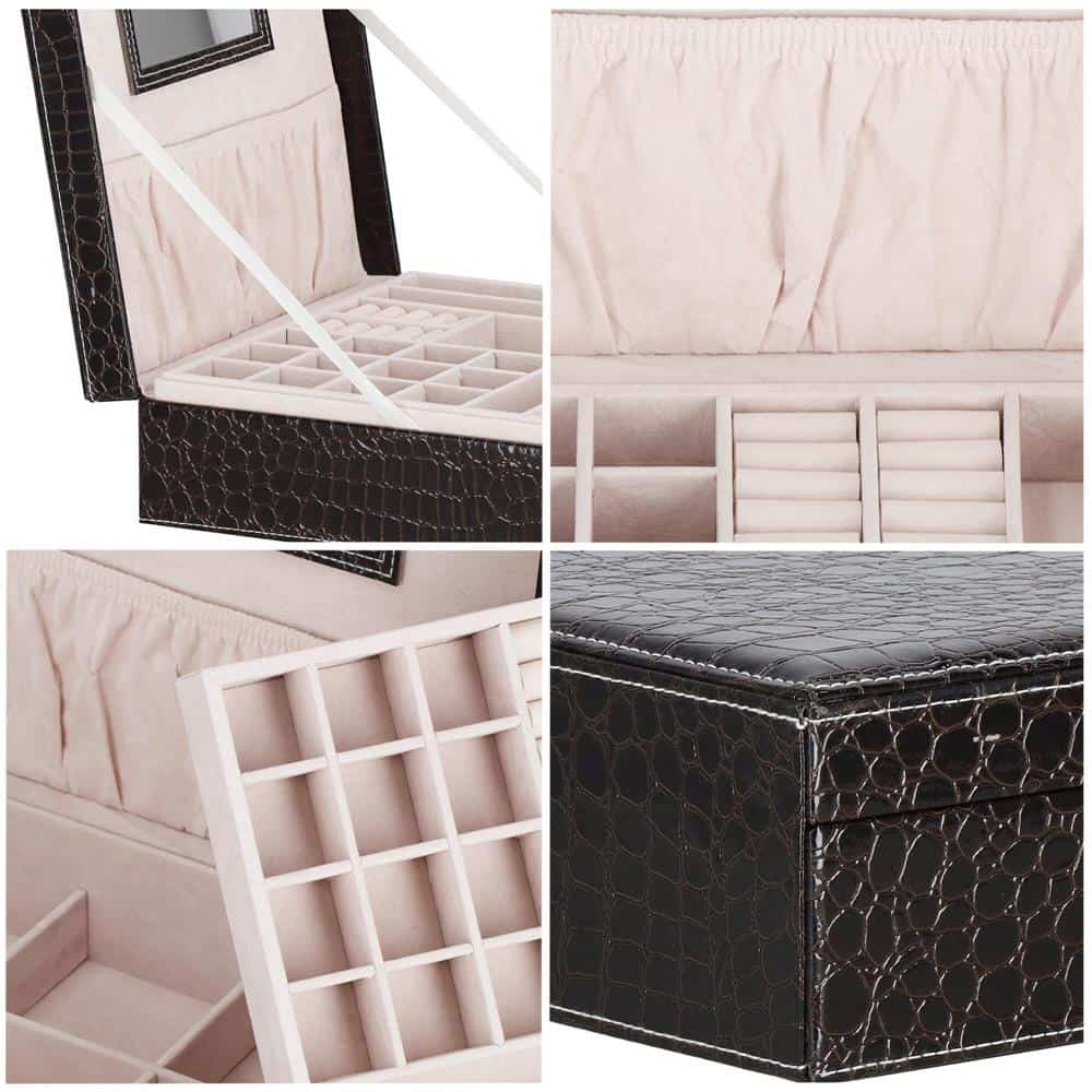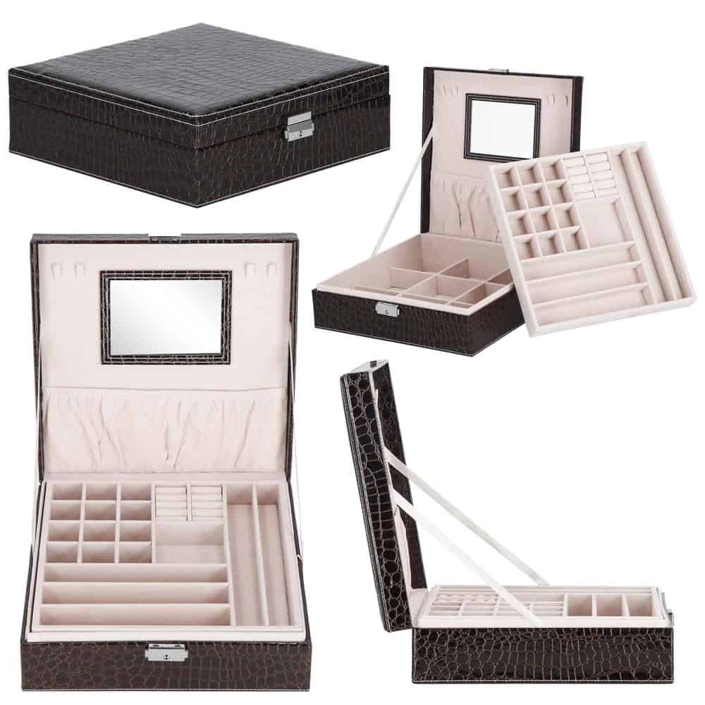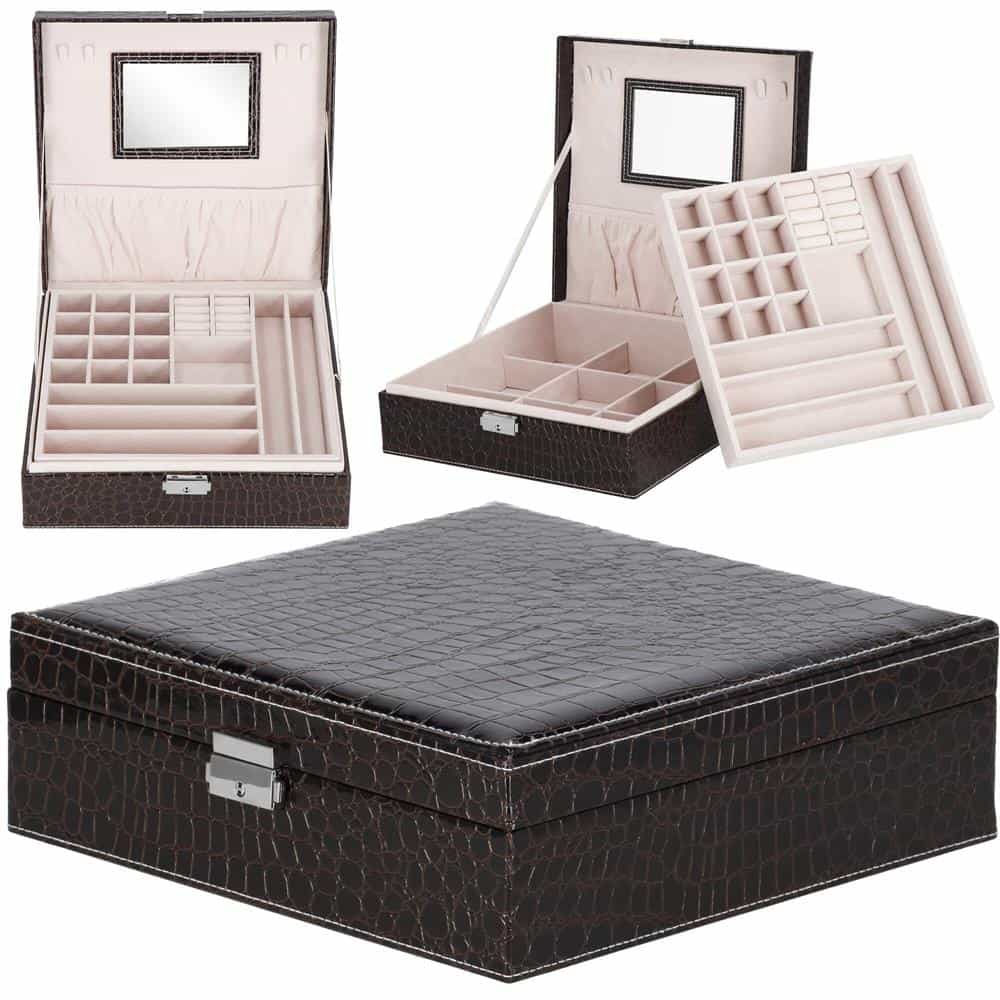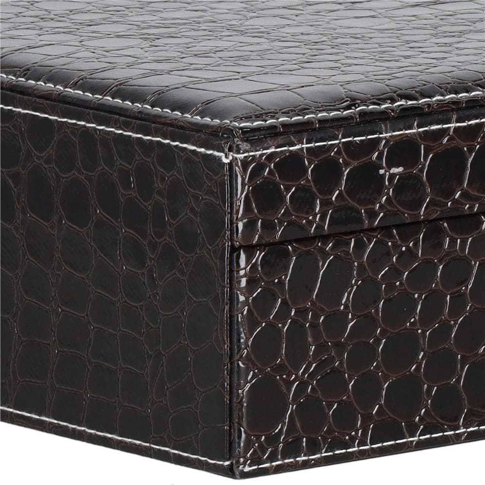 (DL) Cutie depozitare si organizare bijuterii, MDF, piele ecologica, 26 x 26 x 8,5cm, negru sarpe Mob360 – produs disponibil în magazinul Mob360.