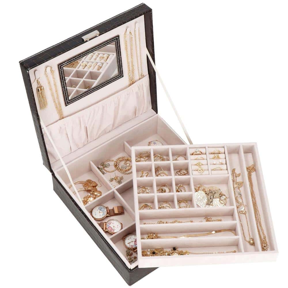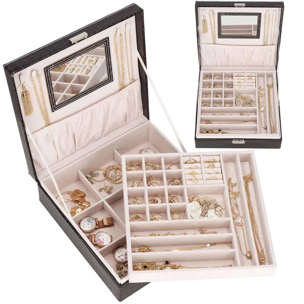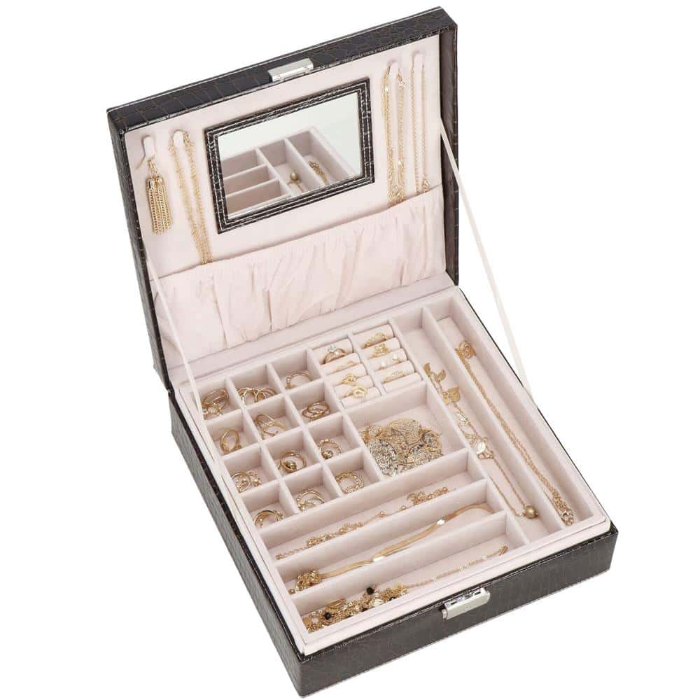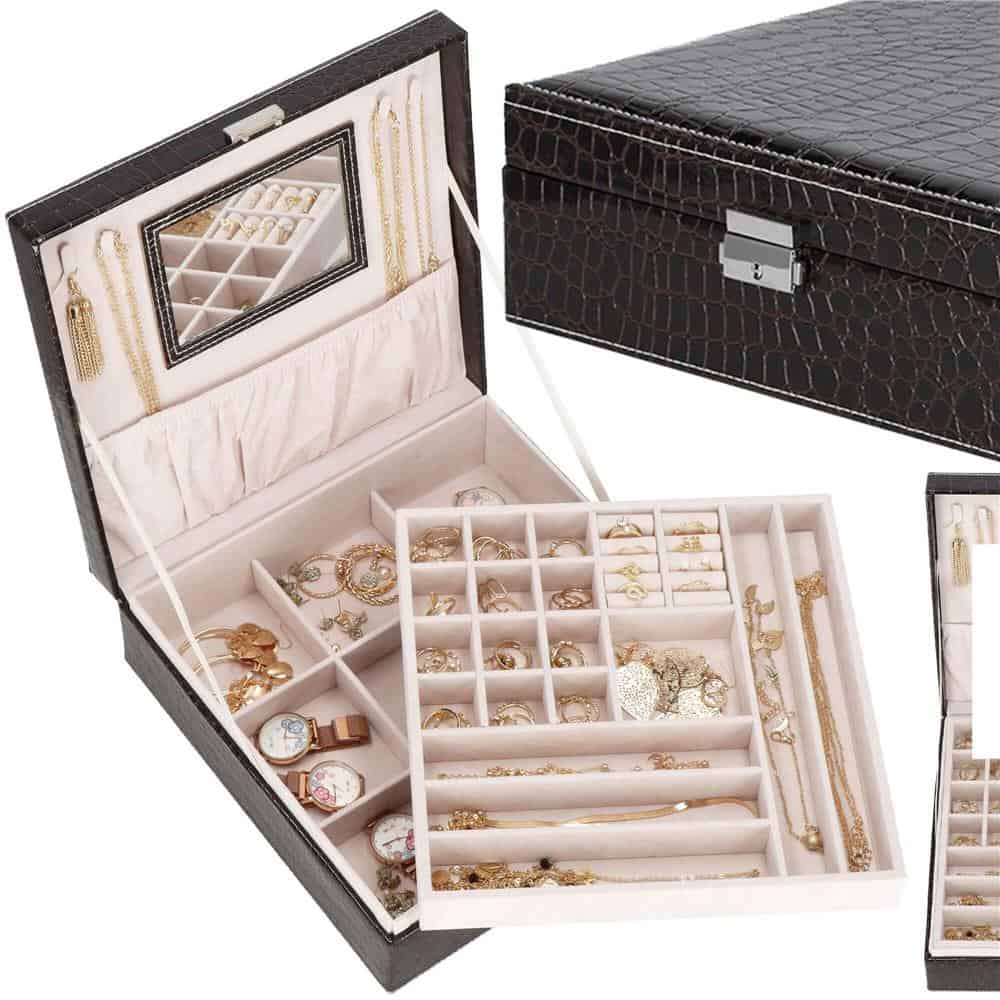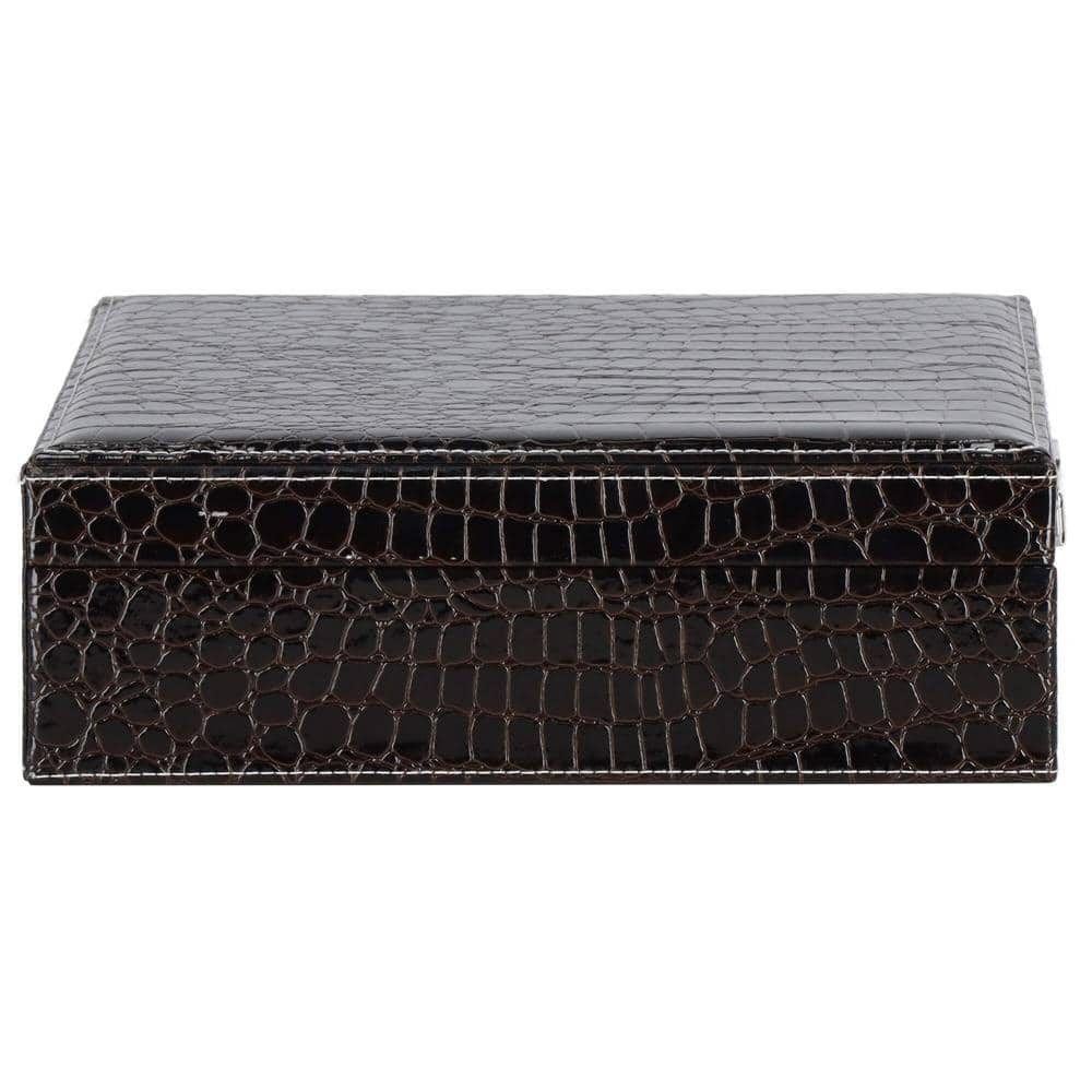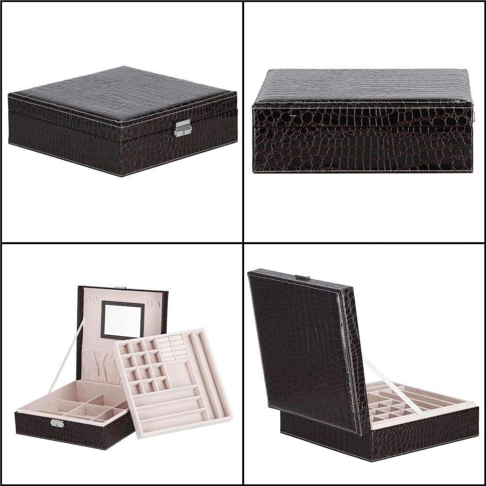 (DL) Cutie depozitare si organizare bijuterii, MDF, piele ecologica, 26 x 26 x 8,5cm, negru sarpe Mob360 – produs disponibil în magazinul Mob360.