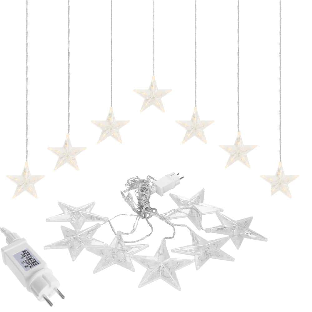 PARAMETRII: Culoare: alb caldLungimea partii de iluminare: aproximativ 2 mLungime cablu de alimentare: aproximativ 3 mAmplasarea turturilor: la fiecare 35 cmLungime turturi: 80 cm / 60 cm / 33 cm / 20 cmLatimea stelelor: 15 cm70 LED-uriSursa de alimentare 220-240vLED-uri cu economie de energieAlimentat electricArderea unui LED nu opreste setulLampi pe fire de cupru durabile cu diametrul de 1,3 mm, rezistente la rupereCertificat CE, RoHSClasa de etanseitate IP44Utilizare externa si interna MAGIA ILUMINARII DE CARACIUN Perdeaua LED arata grozav pe un brad de Craciun, fereastra, arbusti din gradina sau agatata pe o balustrada de balcon. Sunt accentul perfect pentru a introduce o dispozitie festiva in jurul tau. Datorita unei game largi de culori, o poti gasi pe cea perfecta pentru tine, pentru a-ti decora casa, gradina sau compania. Lasa-te purtat de atmosfera de sarbatoare si fa ca sarbatorile sa fie speciale pentru tine si familia ta. Perdeaua noastra se caracterizeaza prin inalta calitate si manopera. Le poti folosi atat acasa, cat si afara. Functioneaza excelent chiar si in jurul fulgilor de zapada care cad.Perdeaua este un set de lumini interconectate care fac senzatie nu doar de sarbatori, ci si de alte sarbatori, ca ornament pentru copaci, arbusti sau chiar suprafete plane. Deoarece acopera o suprafata mare, dau multa lumina si in acelasi timp creeaza o atmosfera unica.Conectorii ermetici au clasa de etanseitate IP44, ceea ce inseamna ca sunt adaptati pentru utilizare in exterior fara a fi nevoie de izolatie suplimentara. Butonul controlerului este sigilat, cauciucat. Sarma groasa de cupru este rezistenta la rupere sau la temperaturi scazute. Lampile de la licitatiile noastre sunt compatibile, ceea ce inseamna ca le puteti combina in seturi.Conectorii ermetici au clasa de etanseitate IP44, ceea ce inseamna ca sunt adaptati pentru utilizare in exterior fara a fi nevoie de izolatie suplimentara. Butonul controlerului este sigilat, cauciucat. Sarma groasa de cupru este rezistenta la rupere sau la temperaturi scazute.In plus, luminile sunt mai sigure decat lampile traditionale, deoarece LED-urile sunt alimentate de o tensiune joasa sigura obtinuta de la un transformator (adica o sursa de alimentare care reduce tensiunea de la retea la cativa volti), acesta este marcat pe ambalaj ca LOW VOLTAJ. Drept urmare, LED-urile nu se incalzesc si pot fi atinse in siguranta. De asemenea, nu exista riscul de electrocutare daca sirul de lampi este deteriorat, de exemplu, in timpul depozitarii, cand a fost infasurat incorect sau, in cazul plasticului deteriorat, dupa multi ani de utilizare.