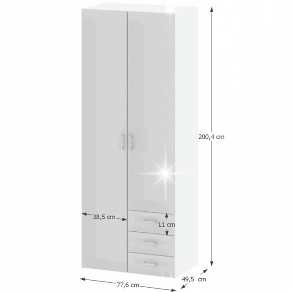 Dulap, 2 uşi, alb extra lucios HG, GWEN 70425