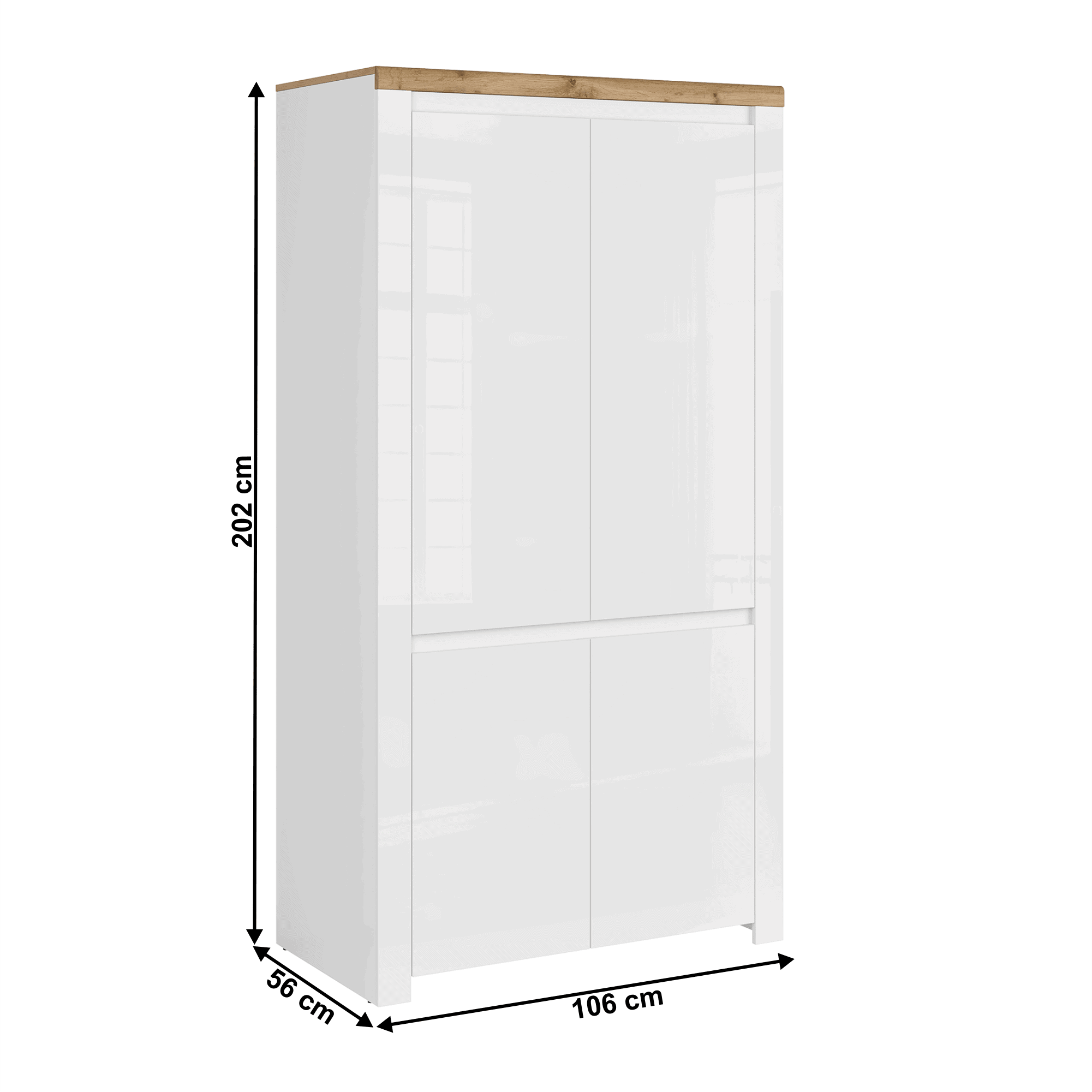 Dulap 4D, alb lucios/ stejar wotan, VILGO