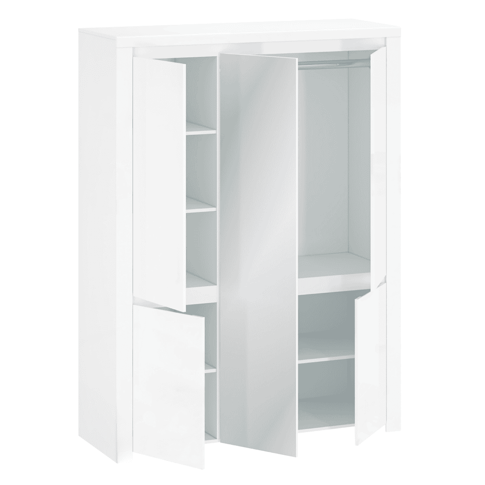 Dulap 5D cu oglindă, alb lucios, LINDY