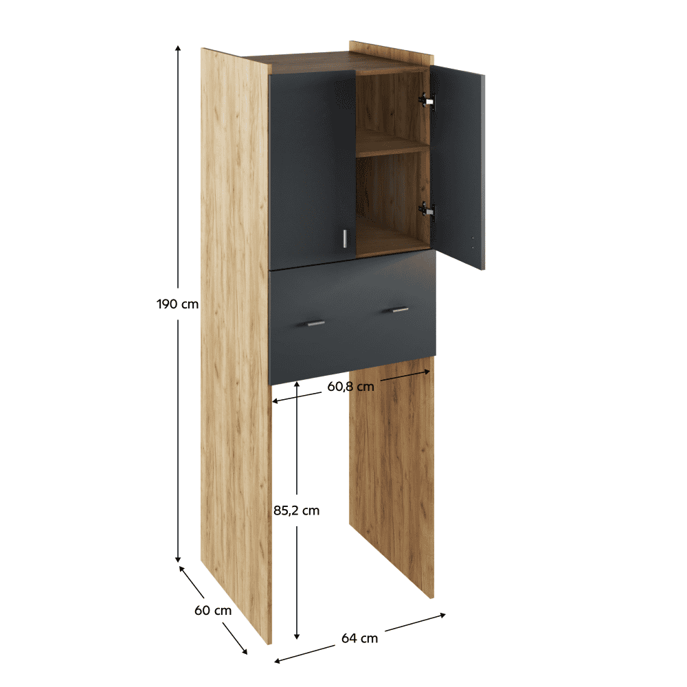 Dulap adânc deasupra maşinii de spălat, stejar artisan/grafit, NATALI TYP 9