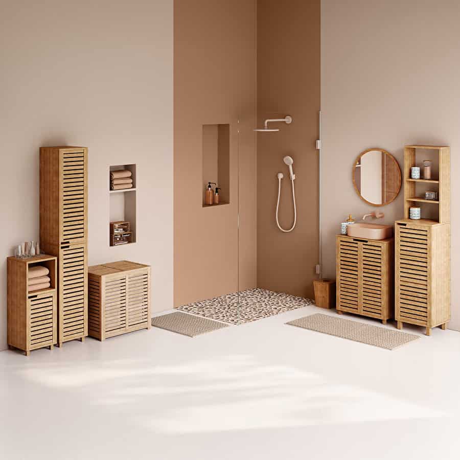Dulap baie 5Five Sicela pentru lavoar, cu usi si rafturi, bambus si MDF, 60x28x80 cm, natur Mob360