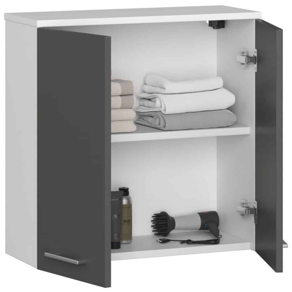 Dulap baie suspendat, cu 2 usi si 1 raft interior, PAL 16 mm, 60x23x60 cm, alb si gri Mob360 – produs disponibil în magazinul Mob360.