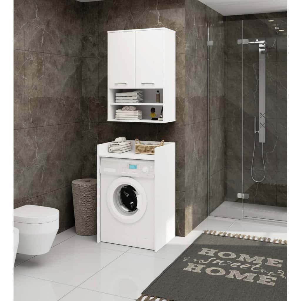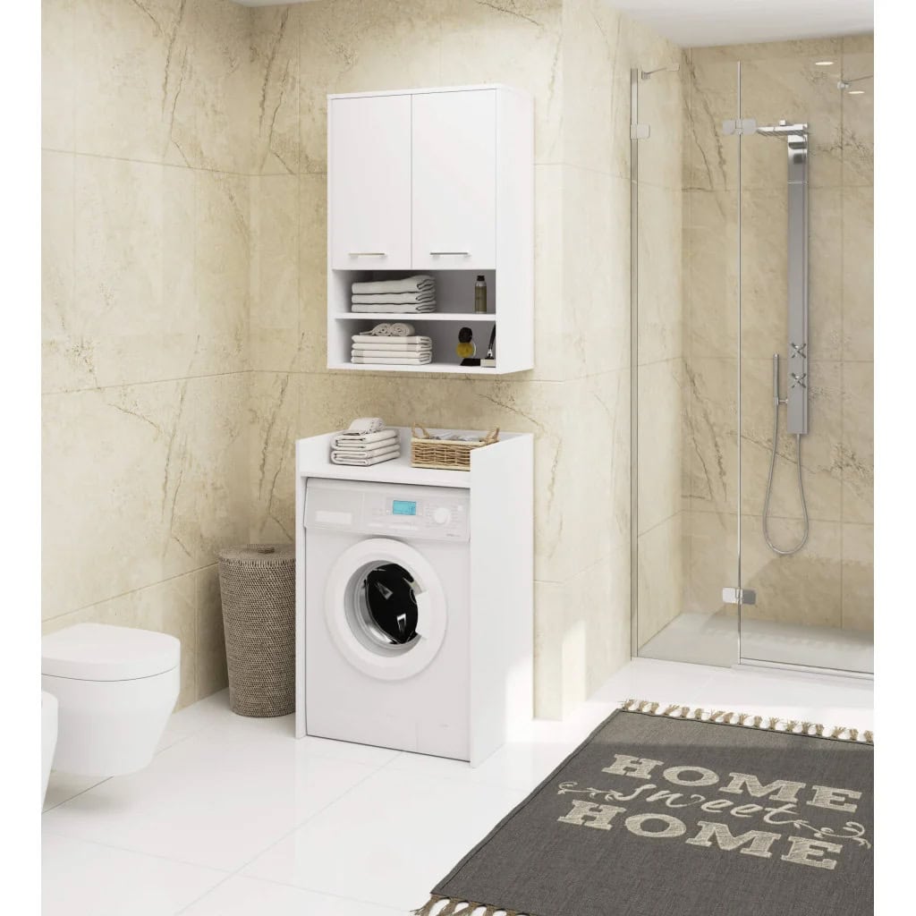 Dulap baie suspendat, cu 2 usi si 2 rafturi deschise, PAL 16 mm, 64x30x94 cm, alb Mob360 – produs disponibil în magazinul Mob360.