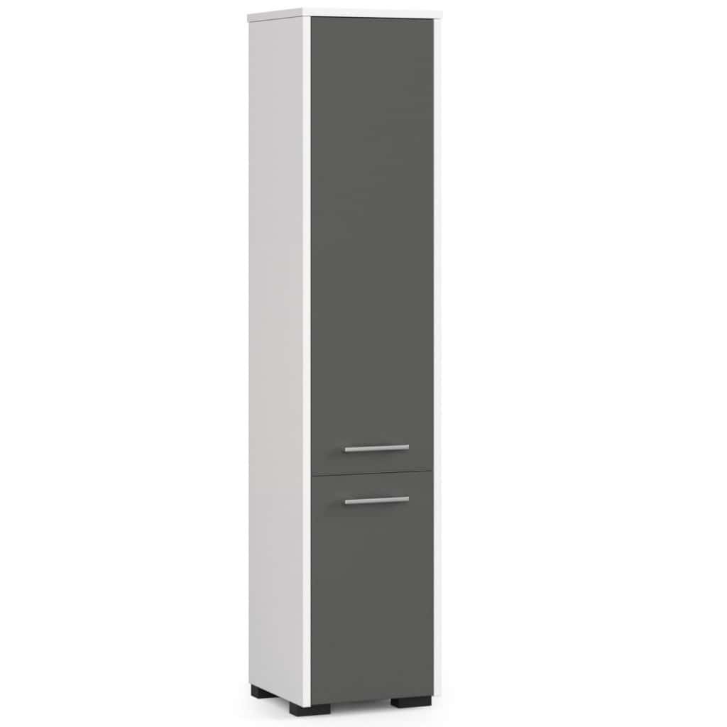Dulap baie tip coloana cu 2 usi si 5 rafturi, PAL laminat, 30x30x140 cm, alb si gri Mob360