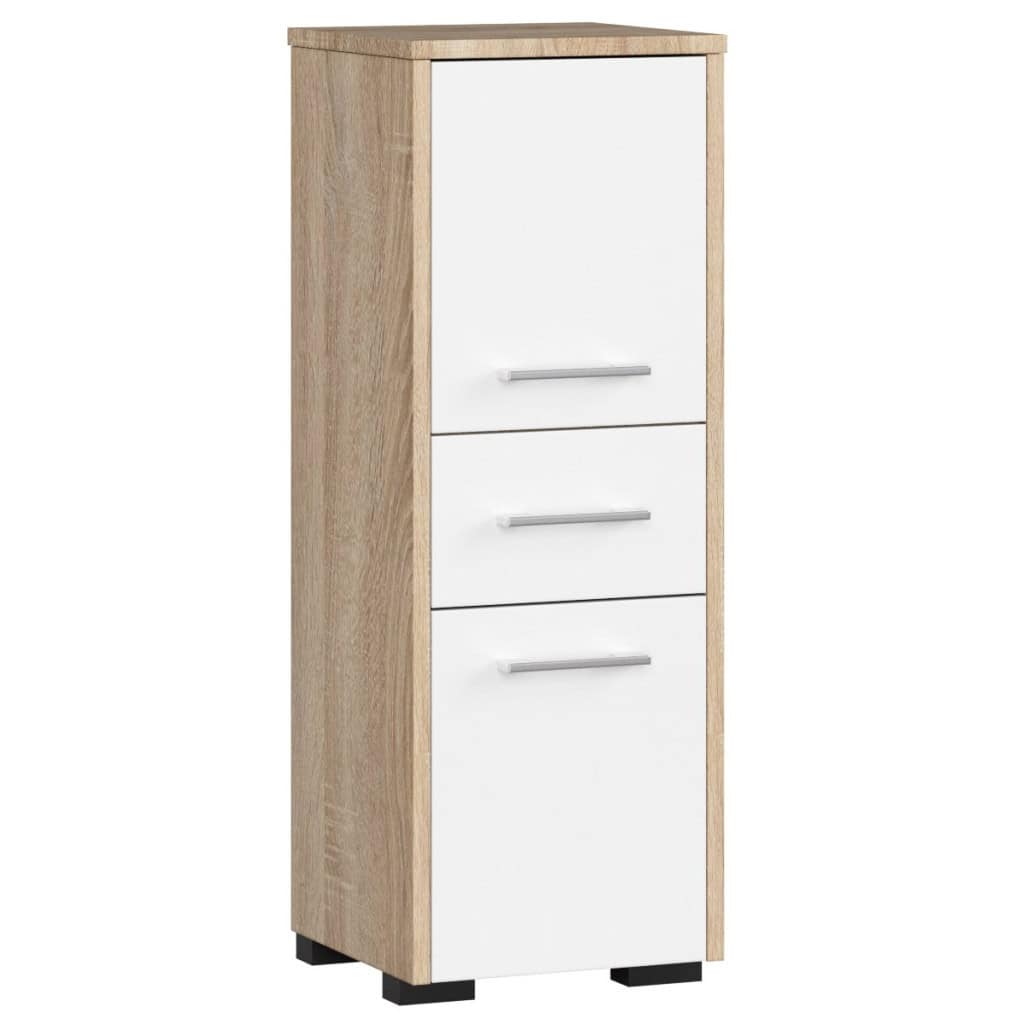 Dulap baie tip coloana cu 2 usi si sertar, PAL laminat, 30x30x85 cm, stejar sonoma si alb Mob360