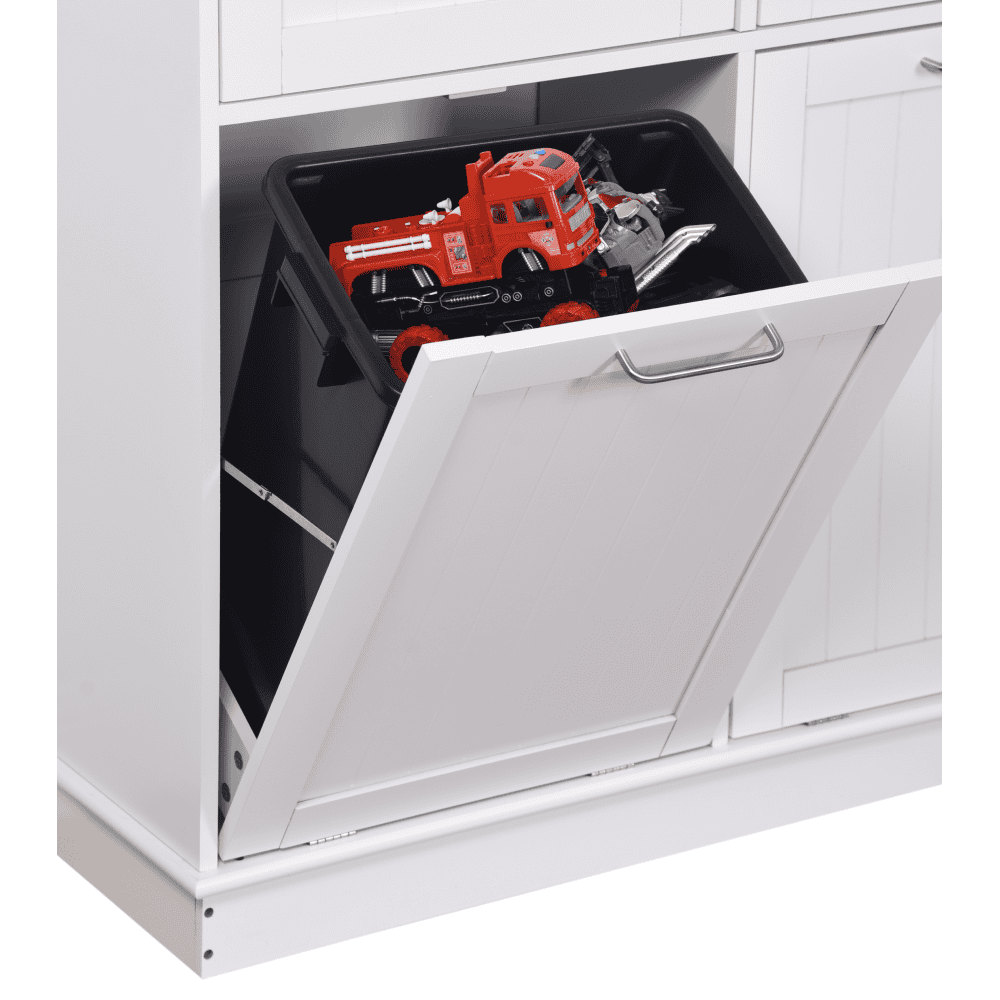 Dulap basculant cu coş de gunoi, alb/bambus, DELINS TYP 2