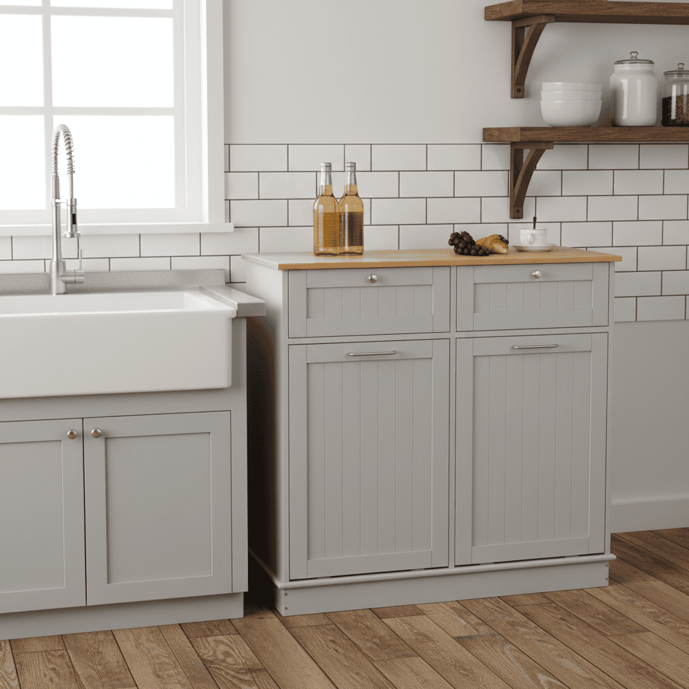 Dulap basculant cu coş de gunoi, gri/bambus, DELINS TYP 2