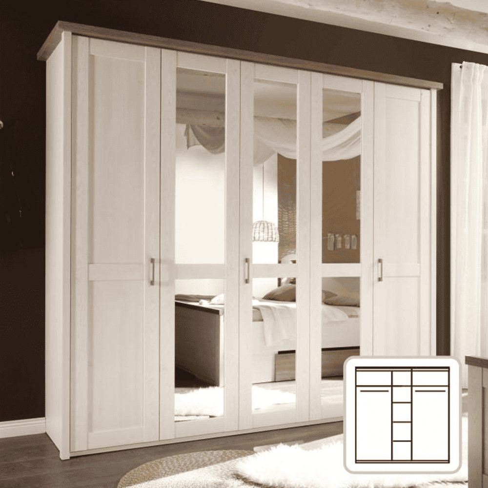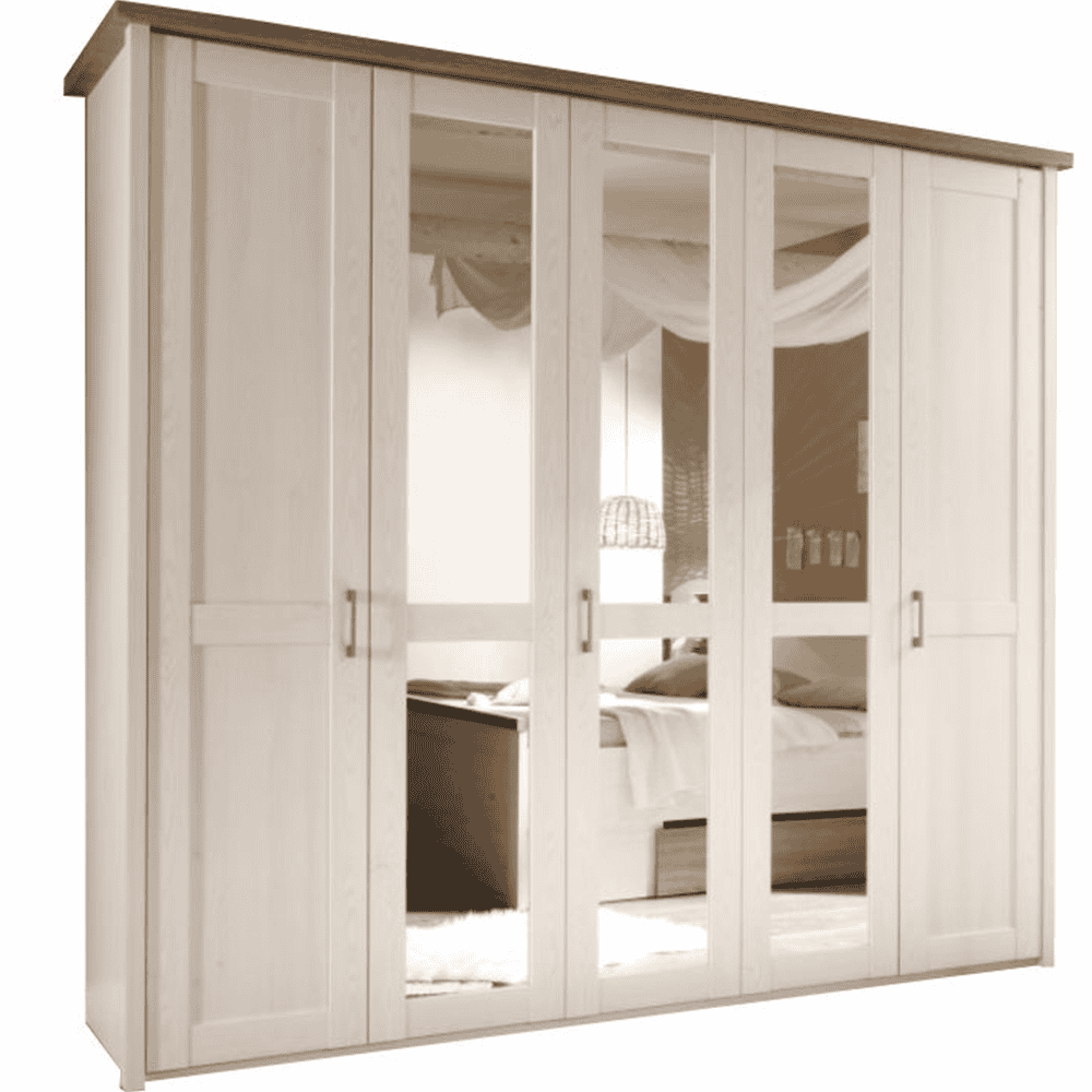 Dulap cu 5-uşi (3 uşi cu oglindă), (LxAxH): 241x212x62cm.