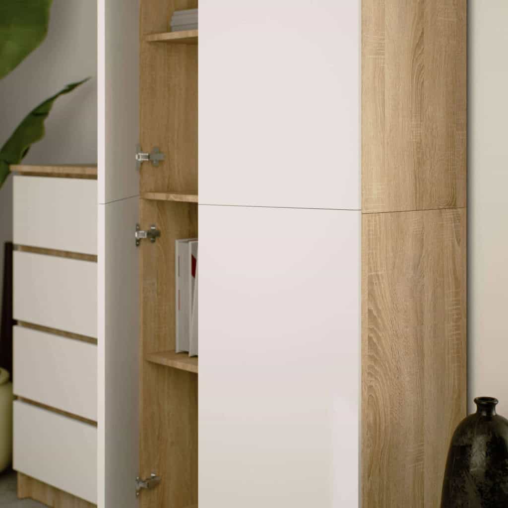 Dulap cu 8 etajere, PAL laminat 16 mm, 80x35x180 cm, stejar sonoma si alb Mob360 – produs disponibil în magazinul Mob360.