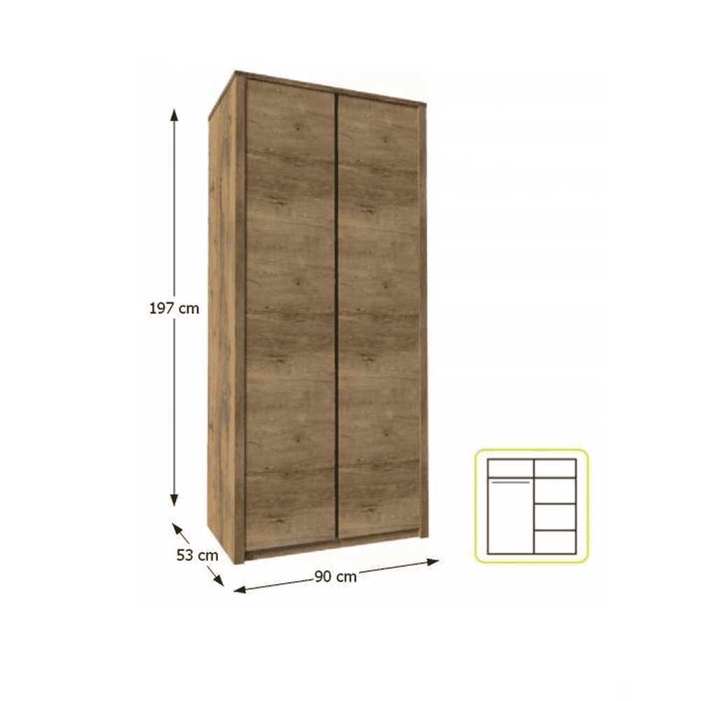 Dulap cu două uşi, stejar lefkas închis, MONTANA S2D
