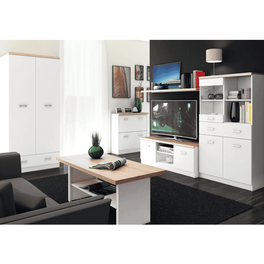 Dulap cu oglindă 2D1S/60, alb / stejar Sonoma, TOPTY TYP 37