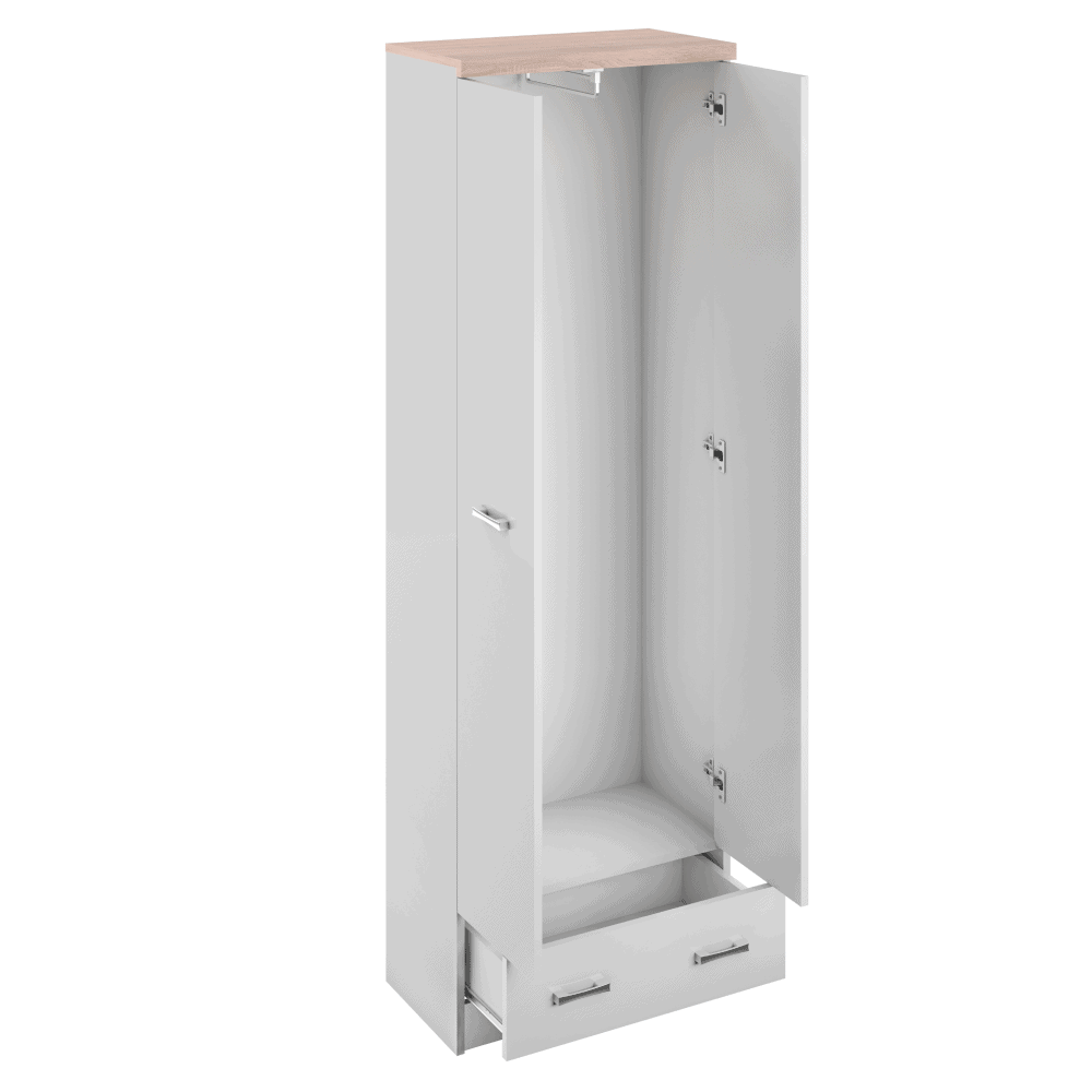 Dulap cu oglindă 2D1S/60 TOPTY TIP 37 Material: PAL melaminat Culoare: albă / stejar Sonoma Dimensiuni (LxAxÎ): 60x33x183 cm Cu două uşi Cuier Un sertar Oglindă Se recomandă ataşarea mobilierului de perete Se livrează dezasamblat