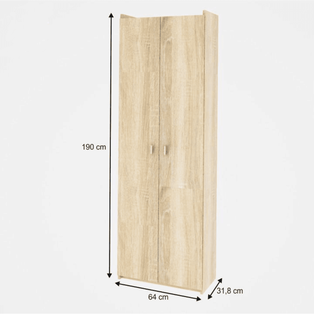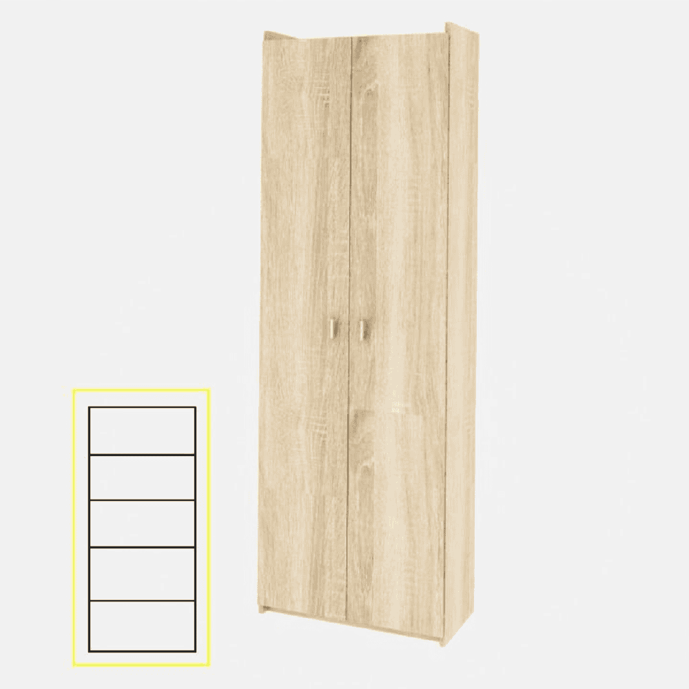Dulap cu poliţe – 1 fixă şi 3 reglabile. Dimensiuni (LxHxA): 64x190x31,8 cm. Material şi culoare: PAL melaminat, stejar sonoma. Produs Slovac. Grosimea materialului: 16 mm