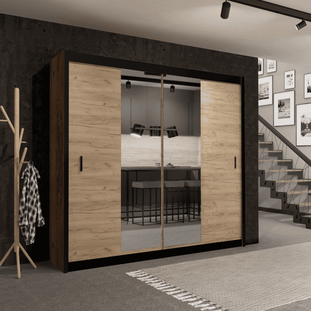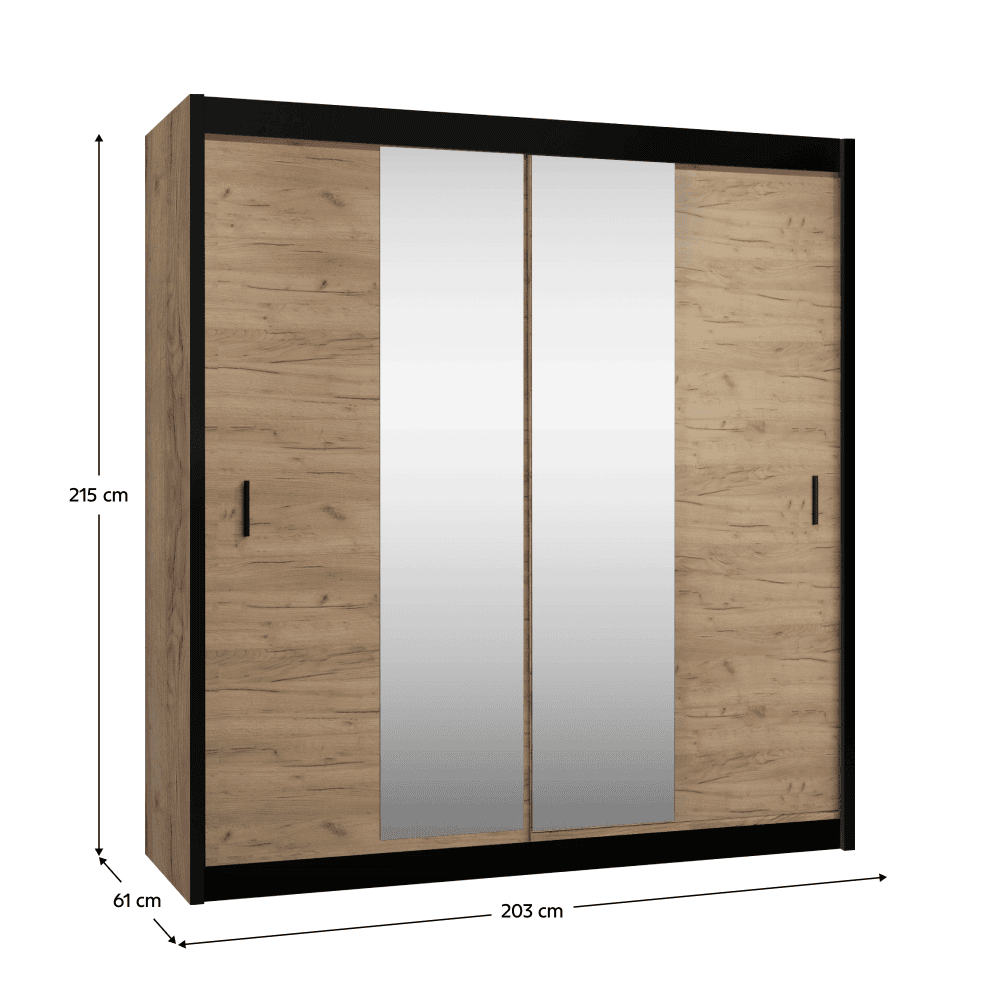 Dulap cu uşi glisante, negru / stejar craft, 203×215 cm, CRAFT