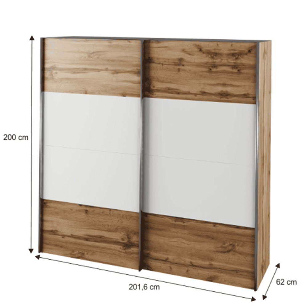 Dulap cu uşi glisante, stejar wotan/alb, GABRIELA NEW