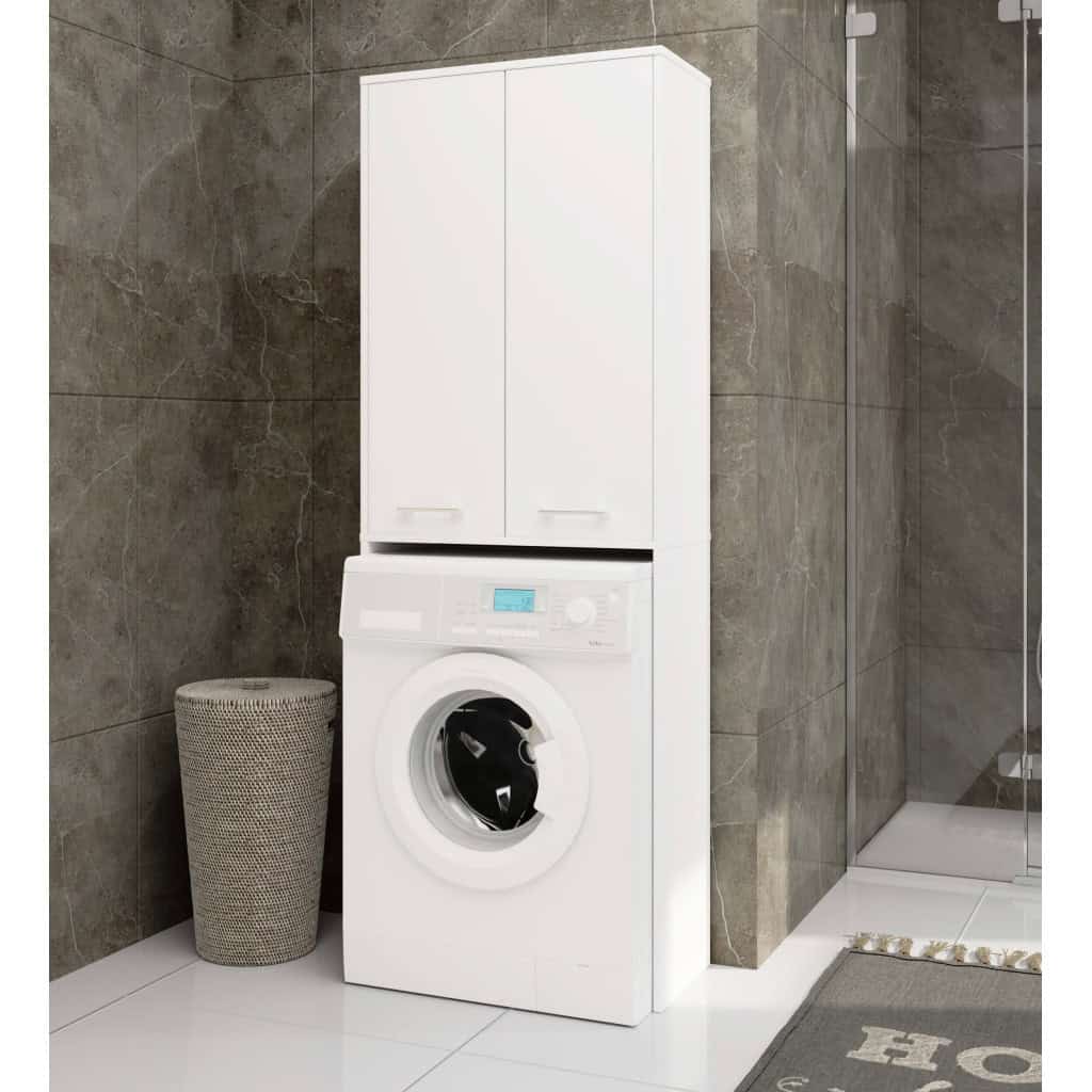 Dulap de baie cu 2 usi si 4 rafturi, pentru spatiul de deasupra masinii de spalat, 64x30x180 cm, alb Mob360