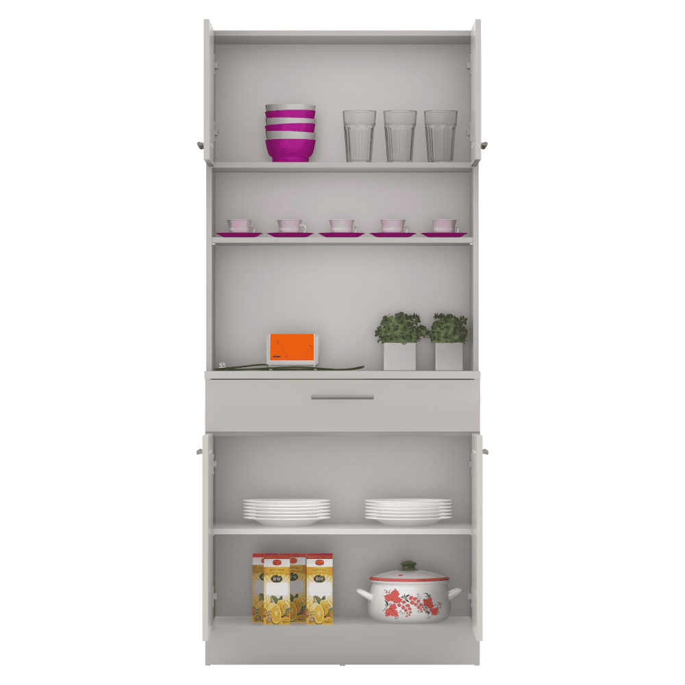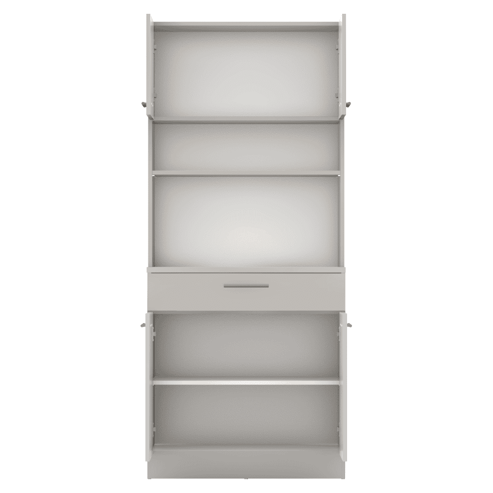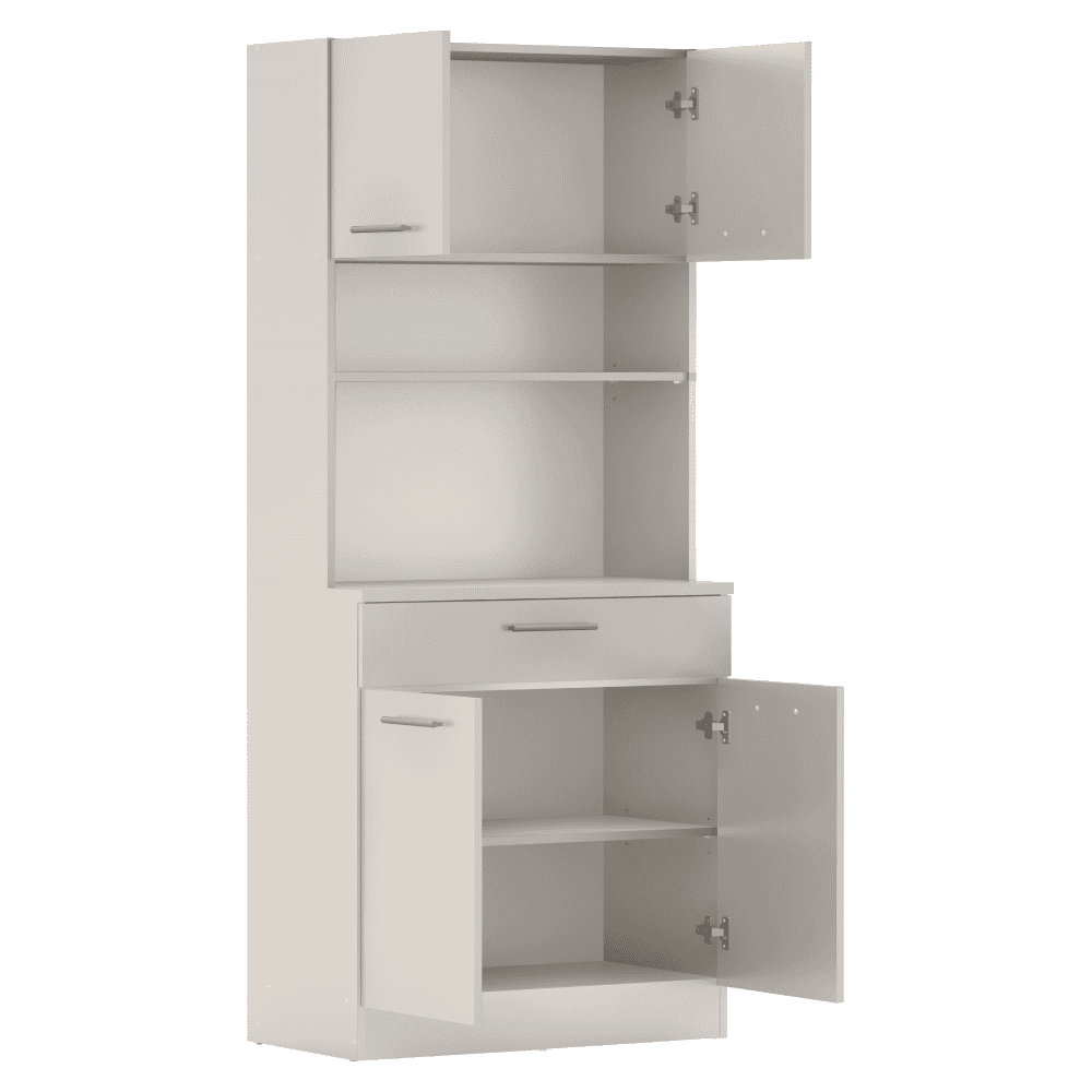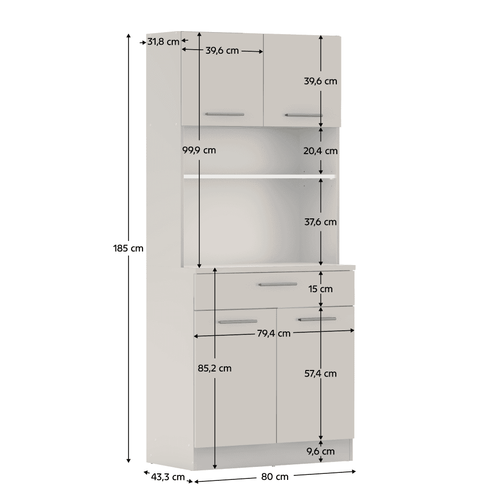 Material: DTD laminat Culoare: caşmir Dimensiuni (lxAxh): 80×43,3×185 cm Grosimea materialului: 1,6 cm Grosimea plăcii superioare a dulapului inferior: 2,2 cm Cu patru uşi Portanţa poliţei: 5 kg 1 sertar Dimensiuni sertar (lxh): 79,4×15 cm Portanţă sertar: 5 kg Cu mânere Material mâner: PVC Culoare mânere: argintiu Pe glisoare Practic Multifuncţional Produs slovac de calitate Recomandăm fixarea pe perete Livrat dezasamblat