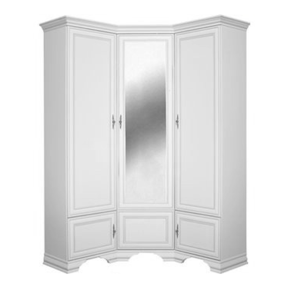 Material: DTD laminat Culoare: alb alpin Dimensiuni (lxAxh): 136,5×136,5×225 cm Grosime material: 1,6 cm Cu trei uşi Cu oglindă Pe picioare Înălţimea piciorului: 8 cm Mânere metalice Culoarea mânerului: argintiu antic Spaţiu de depozitare Zonă de poliţe Portanţă poliţă: 4 kg Design modern Vă recomandăm să ataşaţi mobilierul de perete Livrat dezasamblat