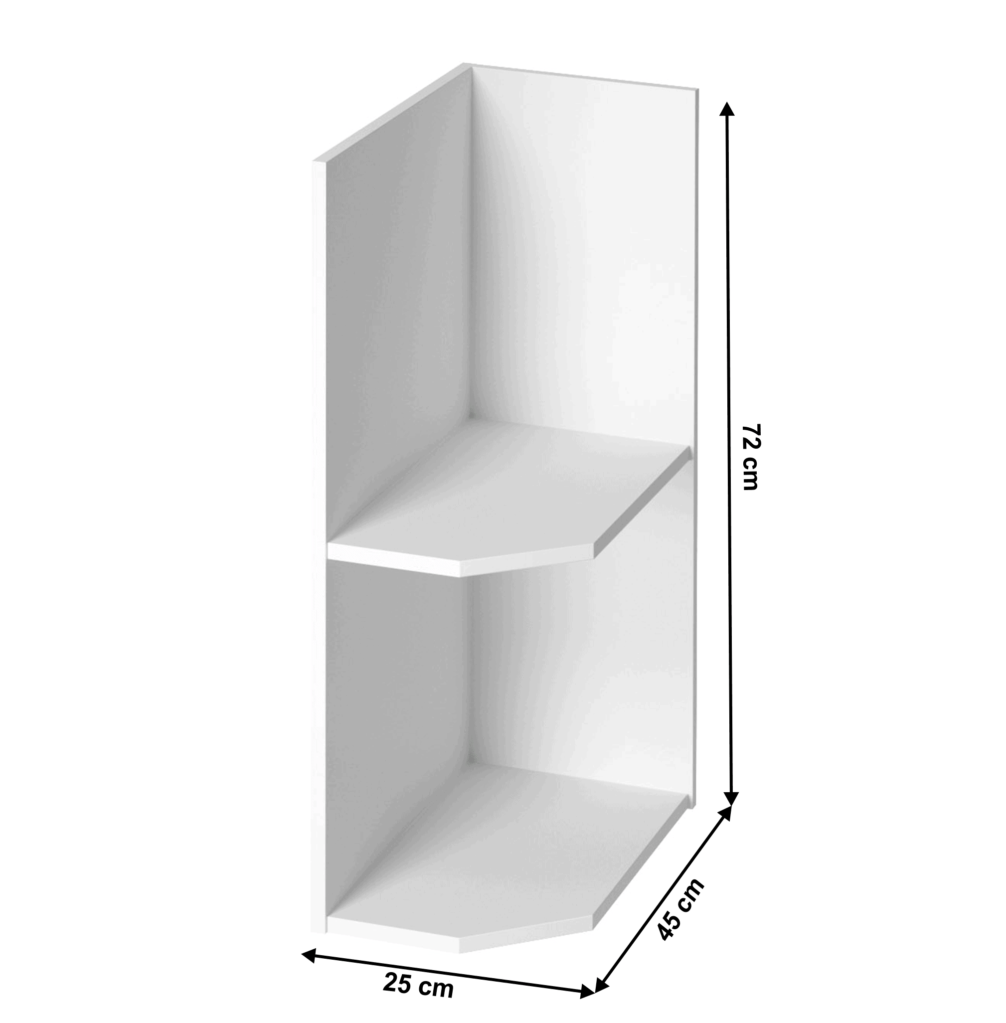 Dulap de colţ cu două rafturi, ROYAL D25PZ, model dreapta