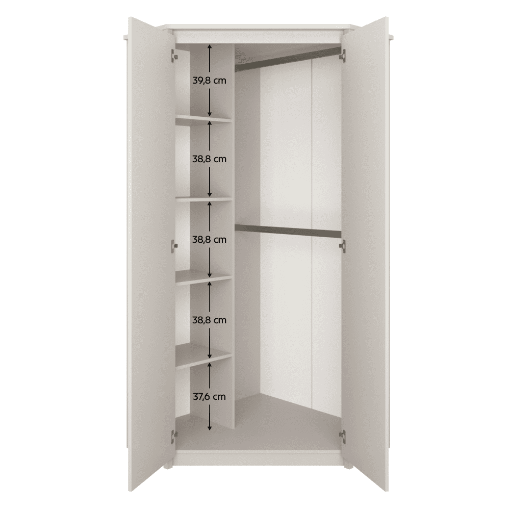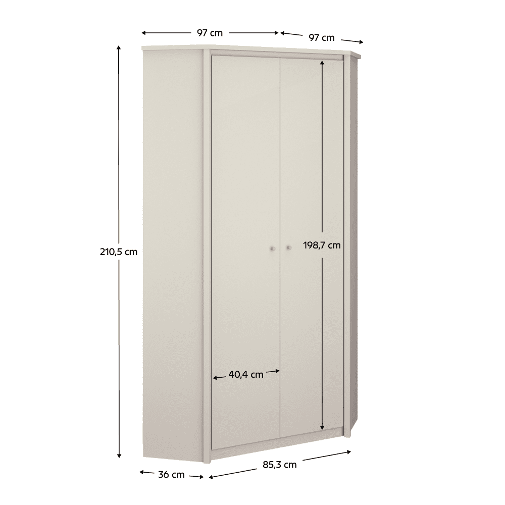 Material: DTD laminat Culoare: caşmir Dimensiuni (lxAxh): 85,3x97x210,5 cm Grosimea materialului DTD: 1,6-3,2 cm Cu două uşi 2x bară de umeraşe Portanţă bară de umeraşe: 15 kg Cu mâner Material mâner: plastic Culoare mâner: caşmir Portanţă poliţă: 5 kg Culoarea plăcii fibrolemnoase: albă Glisoare Înălţimea glisoarelor: 0,3 cm Design modern Vă recomandăm să ataşaţi mobilierul de perete Livrat dezasamblat