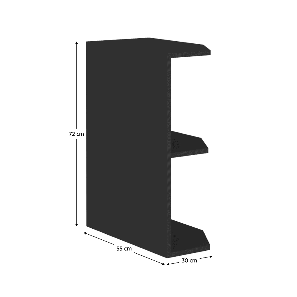 Material: DTD laminat Culoare: negru mat Dimensiuni (Lxlxh): 30x55x72 cm Grosime material: 1,6 cm Cu poliţă Deschis De colţ Fără şină inferioară/soclu Fără blat de lucru Design modern Cu opţiunea de a cumpăra chiuveta universală LAY ON. Livrat dezasamblat Dulapurile inferioare includ şina inferioară, fără blat de lucru. Opţiunea de a achiziţiona blat de lucru din marmură roma la preţul de 379 Lei/m. Opţiunea de a achiziţiona o chiuvetă universală LAY ON.
