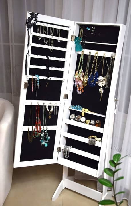 Dulap de toaleta cu oglinda si spatiu de depozitare bijuterii, 41x147cm, alb Mob360