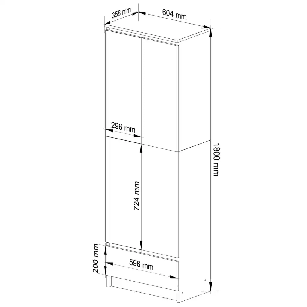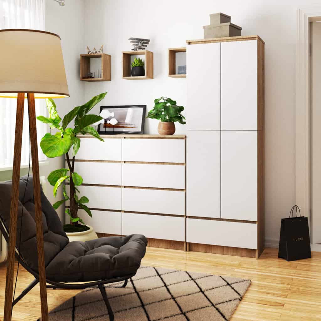Dulap inchis cu 2 usi si sertar, 4 rafturi, PAL laminat 16 mm, 60x35x180 cm, stejar sonoma si alb Mob360 – produs disponibil în magazinul Mob360.