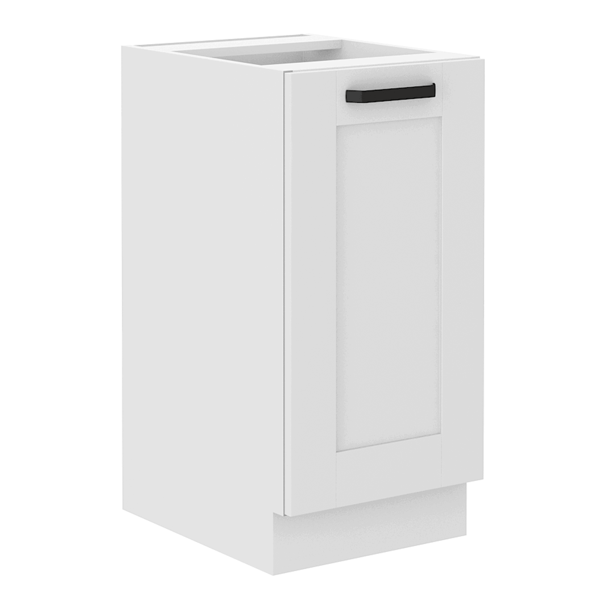 Dulap inferior LULA 40 D 1F BB Material: laminat DTD/MDF înfoliat Culoare: albă Dimensiuni (LxAxÎ): 40x52x82 cm Grosime material: 1,6 cm Cu uşă, Cu raft, Grosime uşă: 2 cm Cu mâner metalic, Culoarea mânerului: neagră, Fără blat, Design dinamic modern, Livrat dezasamblat, Opţiunea de a cumpăra o chiuvetă universală LAY ON, Dulapurile inferioare sunt furnizate împreună cu şina inferioară, Fără blat de lucru. Opţiunea de a achiziţiona blat de lucru din stejar artizan stejar artizan la preţul de 399 lei/m sau marmură roma la preţul de 379 lei/m. Opţiunea de a achiziţiona o chiuvetă universală LAY ON.
