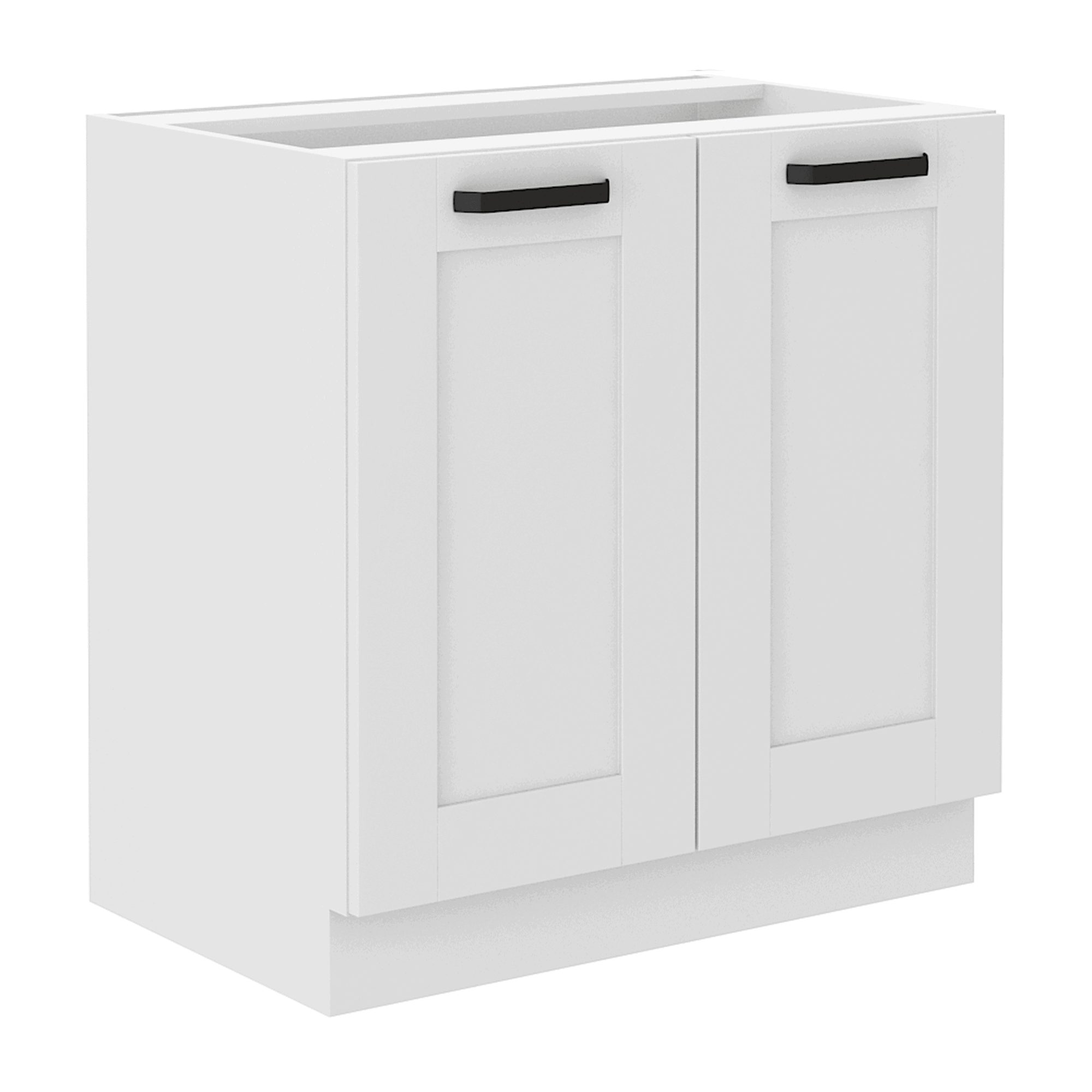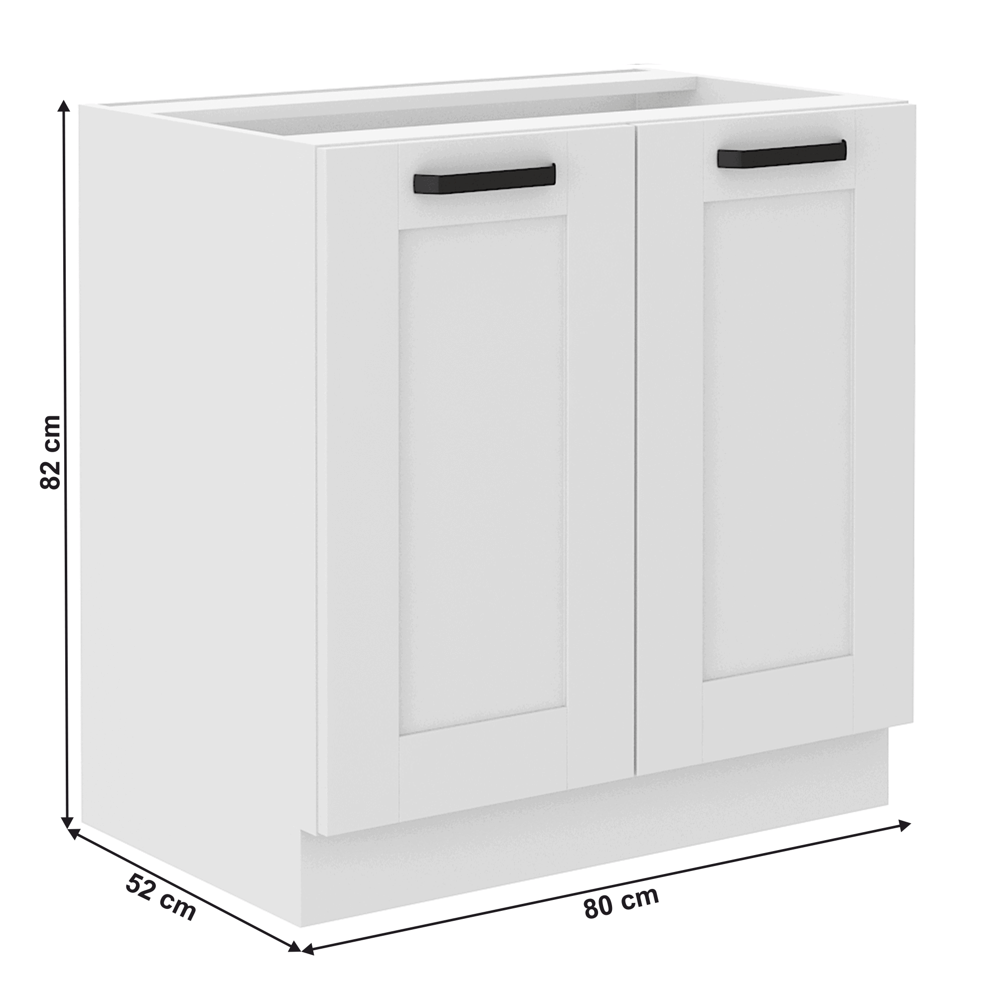 Dulap inferior LULA 80 D 2F BB Material: laminat DTD/MDF înfoliat Culoare: albă Dimensiuni (LxAxÎ): 80x52x82 cm Grosime material: 1,6 cm Grosime uşă: 2 cm Cu două uşi, Rafturi, Cu mâner metalic, Culoarea mânerului: neagră, Cu şină inferioară/plintă, Fără blat de lucru, Design dinamic modern, Se livrează dezasamblat, Opţiunea de a achiziţiona o chiuvetă universală LAY ON, Dulapurile inferioare sunt furnizate împreună cu şina inferioară, Fără blat de lucru. Opţiunea de a achiziţiona blat de lucru din stejar artizan stejar artizan la preţul de 399 lei/m sau marmură roma la preţul de 379 lei/m. Opţiunea de a achiziţiona o chiuvetă universală LAY ON.