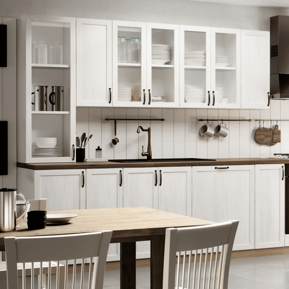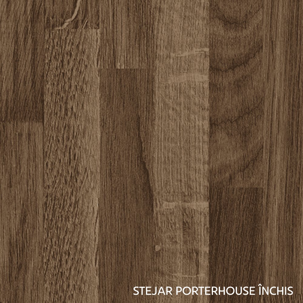 Preţul pentru blatul Stejar Porterhouse Închis 38 mm de 309,-/m. Pentru fiecare dulap inferior (cu excepţia D25PZ) este necesar să cumpăraţi plintă (1 m) la preţul de 49,-/m şi 2 suporturi de fixare pentru plintă la preţul de 5,-/2buc. Preţul finisajului pentru soclu cu adâncimea de 47 cm şi 58 cm este de 37,-.