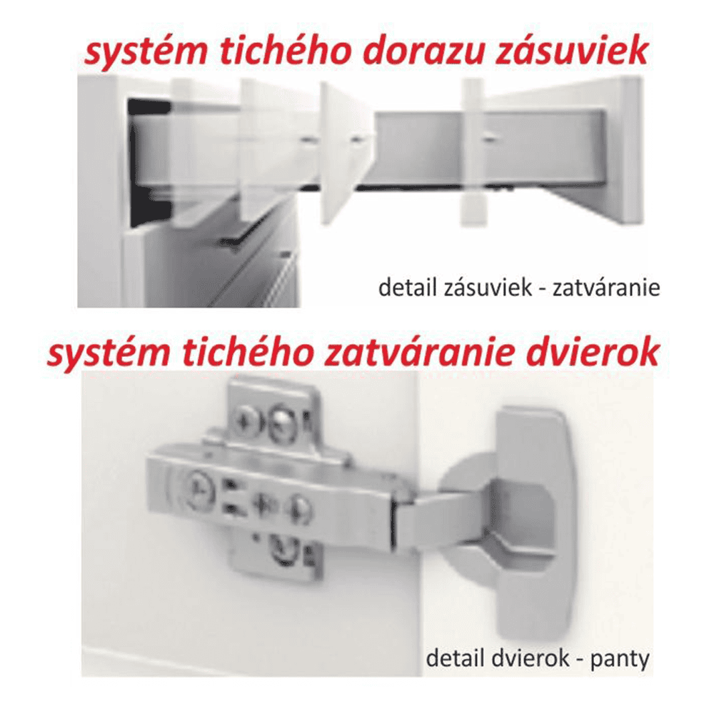 Material şi modelul de culori: PAL melaminat de calitate, de culoare alb extra lucios HIGH GLOSS, corp stejar sonoma.