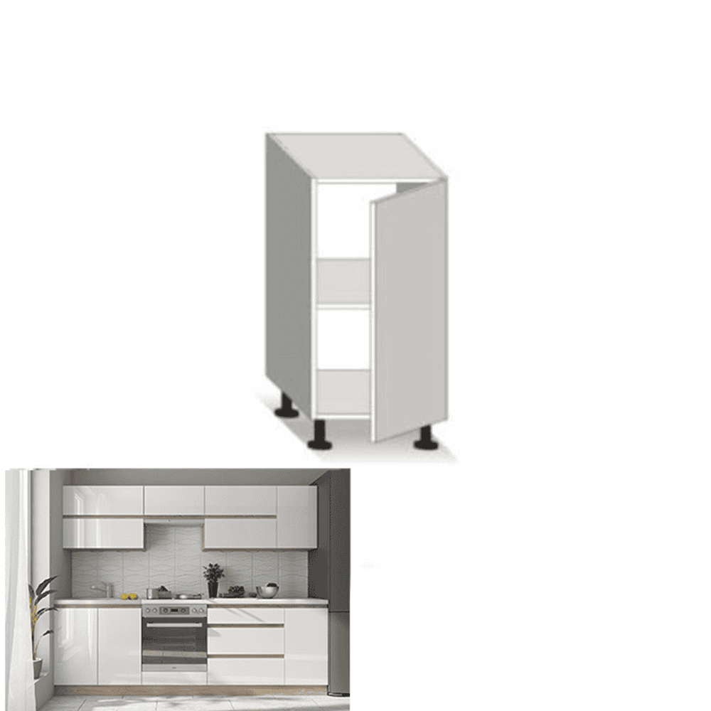 Dulap inferior cu 1 uşă din ansamblul de unităţi de bucătărie în stil şi finisaj modern.