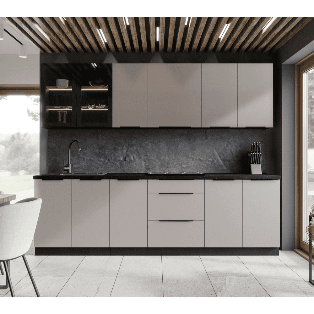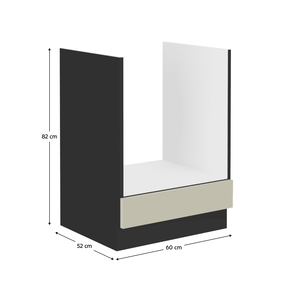 Material: DTD laminat Culoarea uşii: caşmir Culoarea dulapului: negru mat Dimensiuni (Lxlxh): 60x52x82 cm Grosime material: 1,6 cm Dulap fără blat de lucru, Pentru aragaz încorporabil, şina inferioară/plinta inclusă în set,Cu opţiunea de a cumpăra chiuveta universală LAY ON Livrat dezasamblat, Dulapurile inferioare sunt furnizate împreună cu şina inferioară, fără blat. Opţiunea de a achiziţiona blat de lucru din marmură roma la preţul de 379 Lei/m. Opţiunea de a achiziţiona o chiuvetă universală LAY ON.